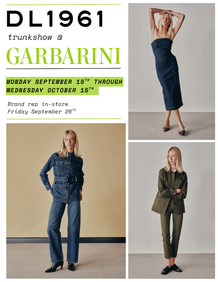 Shop exclusive fall-ready pieces in a range of fits, washes, and silhouettes. Experience DL 1961’s signature premium denim, known for its sculpting fit and eco-friendly fabric. Enjoy the personal touch of Garbarini’s expert stylists to help you find your perfect seasonal look.Don’t miss your chance to explore these limited-time styles in person. Visit us at Garbarini starting Monday, September 15th, and make this fall your most stylish season yet.
