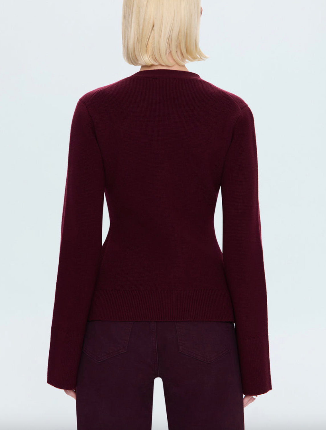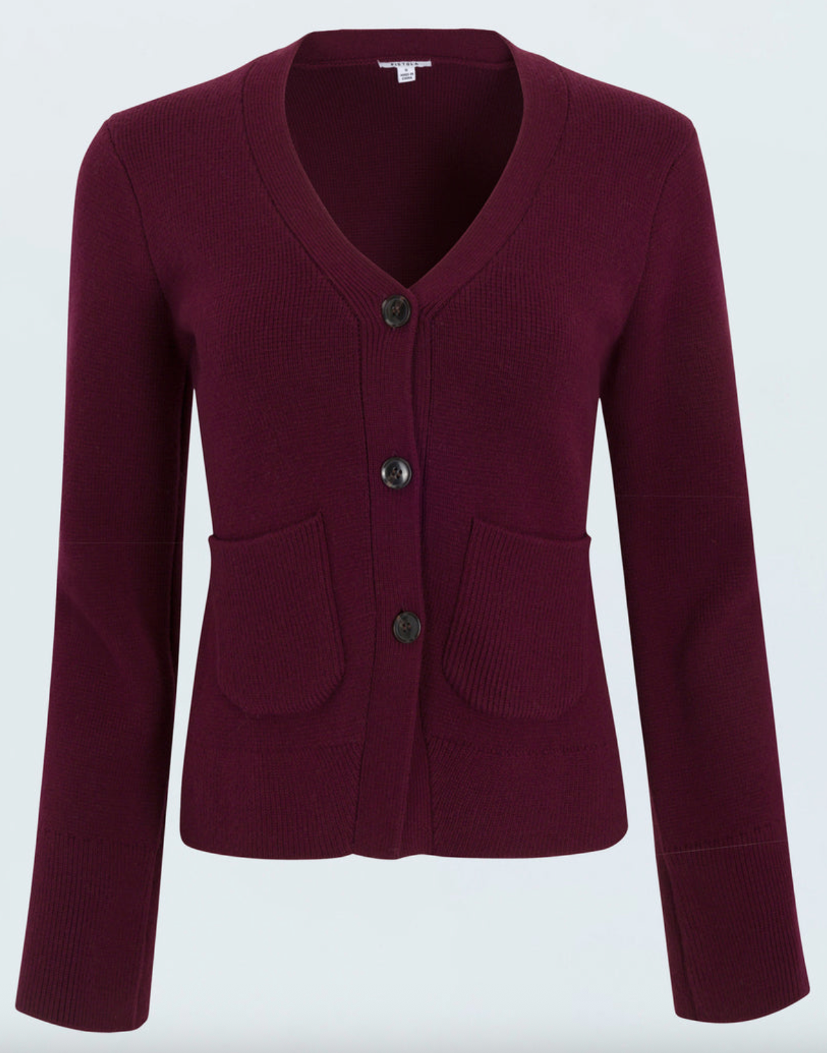 Meet your new go-to layer: Aeron, the effortlessly chic V-neck cardigan designed for elevated comfort and style. Featuring a flattering neckline, relaxed fit, and classic button-front closure, it transitions seamlessly from casual to refined. In Claret, a deep burgundy hue, it brings rich sophistication to your wardrobe. If you love the Dani, this is its equally timeless, more open-necked counterpart.
