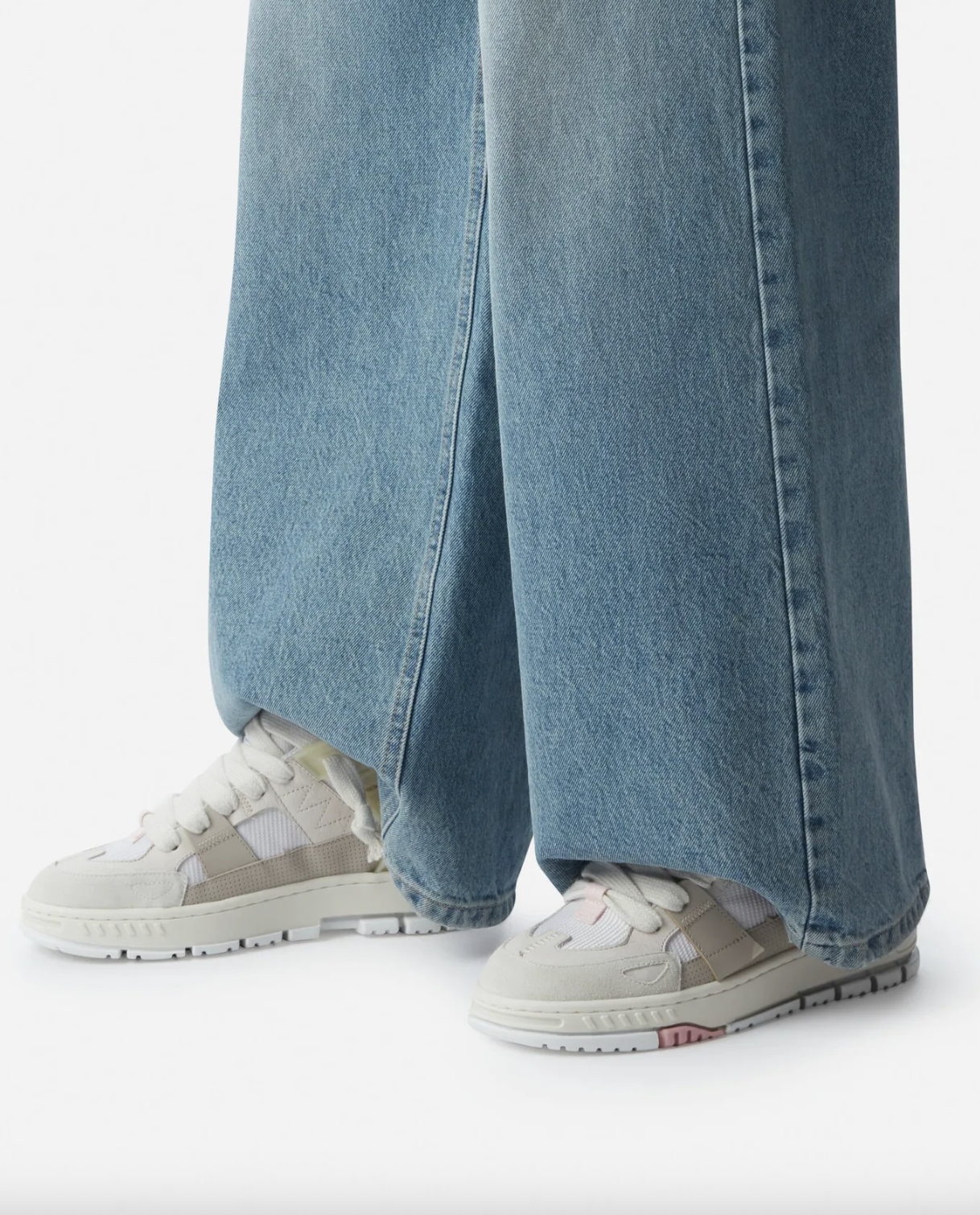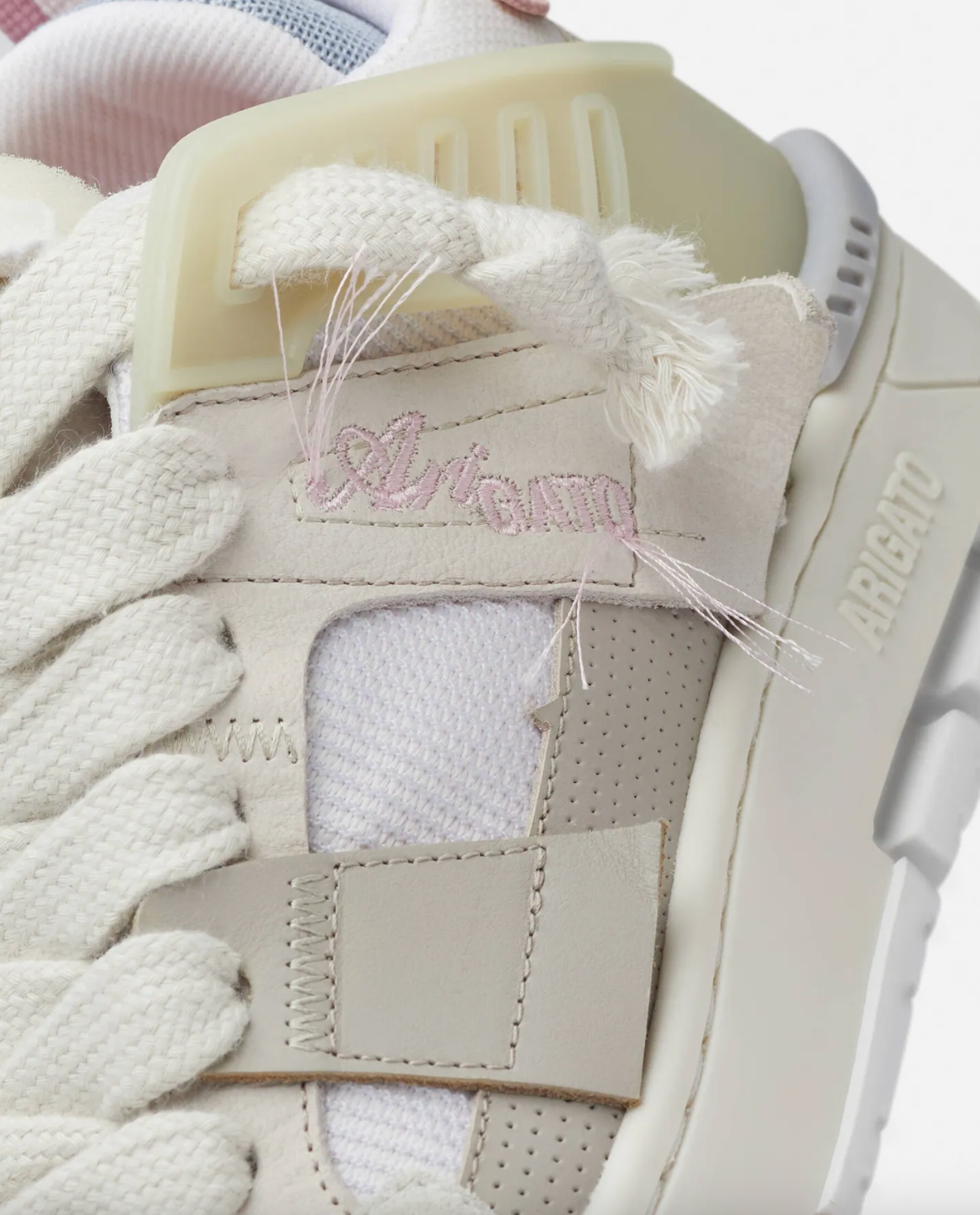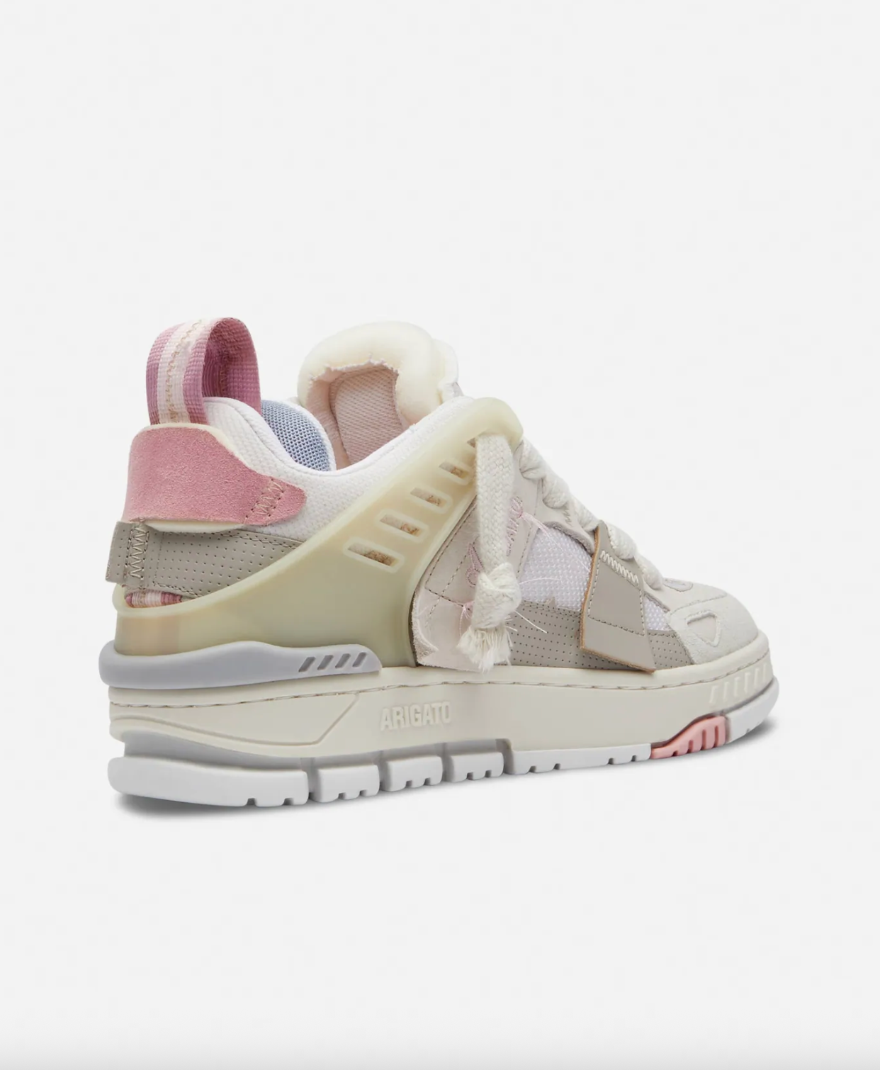 The Area Patchwork Sneaker spotlights the artistry of shoemaking with a deconstructed, prototype-inspired design. Handcrafted in Portugal, it combines paneled leather, nubuck, suede, and honeycomb mesh with frayed trims and raw edges for an intentionally unfinished effect. Embroidered branding on the side is artfully detailed with loose threads, while a branded woven tongue label adds a final touch of authenticity.