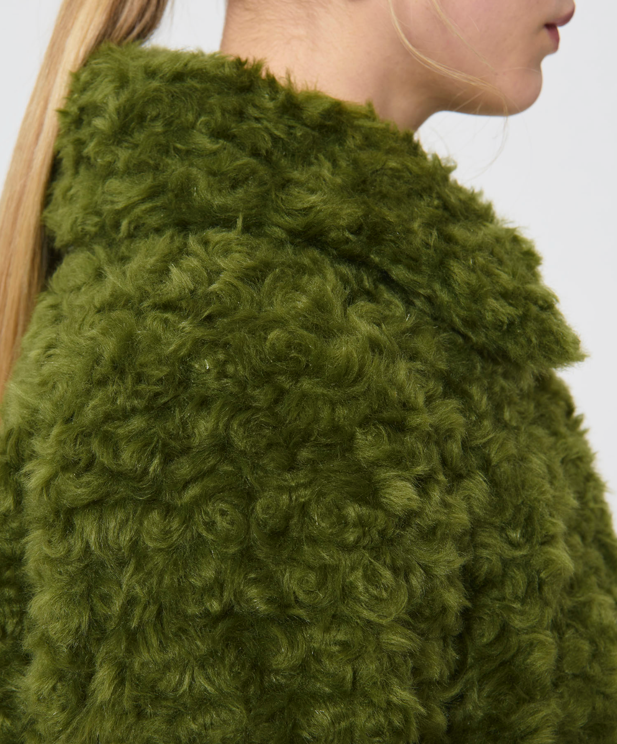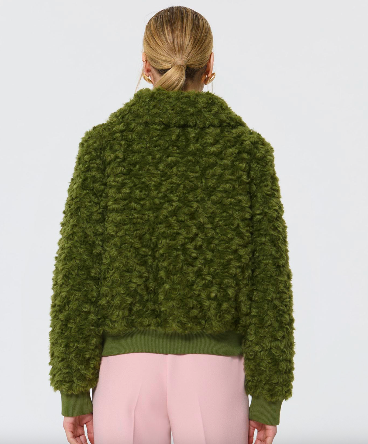 Vibrant and irresistibly soft, the Bianca Cactus Faux Fur brings stylish warmth to any look. Crafted in an intense green hue, this statement piece elevates your silhouette with luxurious texture and modern edge. Designed with long sleeves, a lapel collar, and a zip closure.