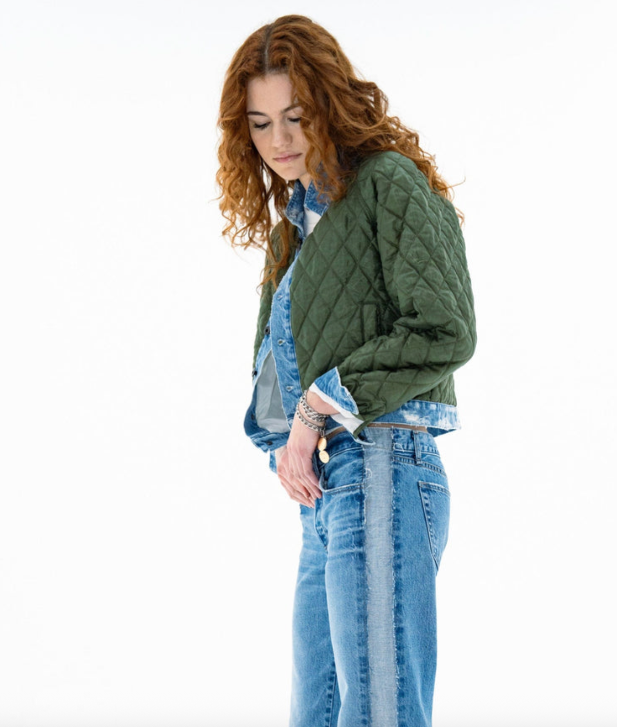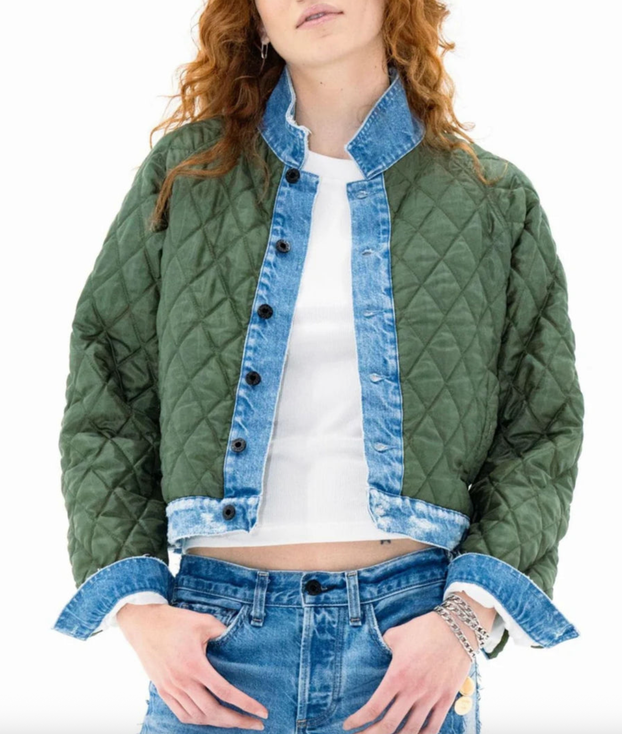 A versatile layering piece designed for year-round wear. Crafted with a quilted body and finished with denim trim at the hem and cuffs, this cropped jacket offers subtle volume and contrast binding for a modern finish. Lightweight yet warm, it’s perfect on its own for crisp days or layered under a coat when the temperature drops.