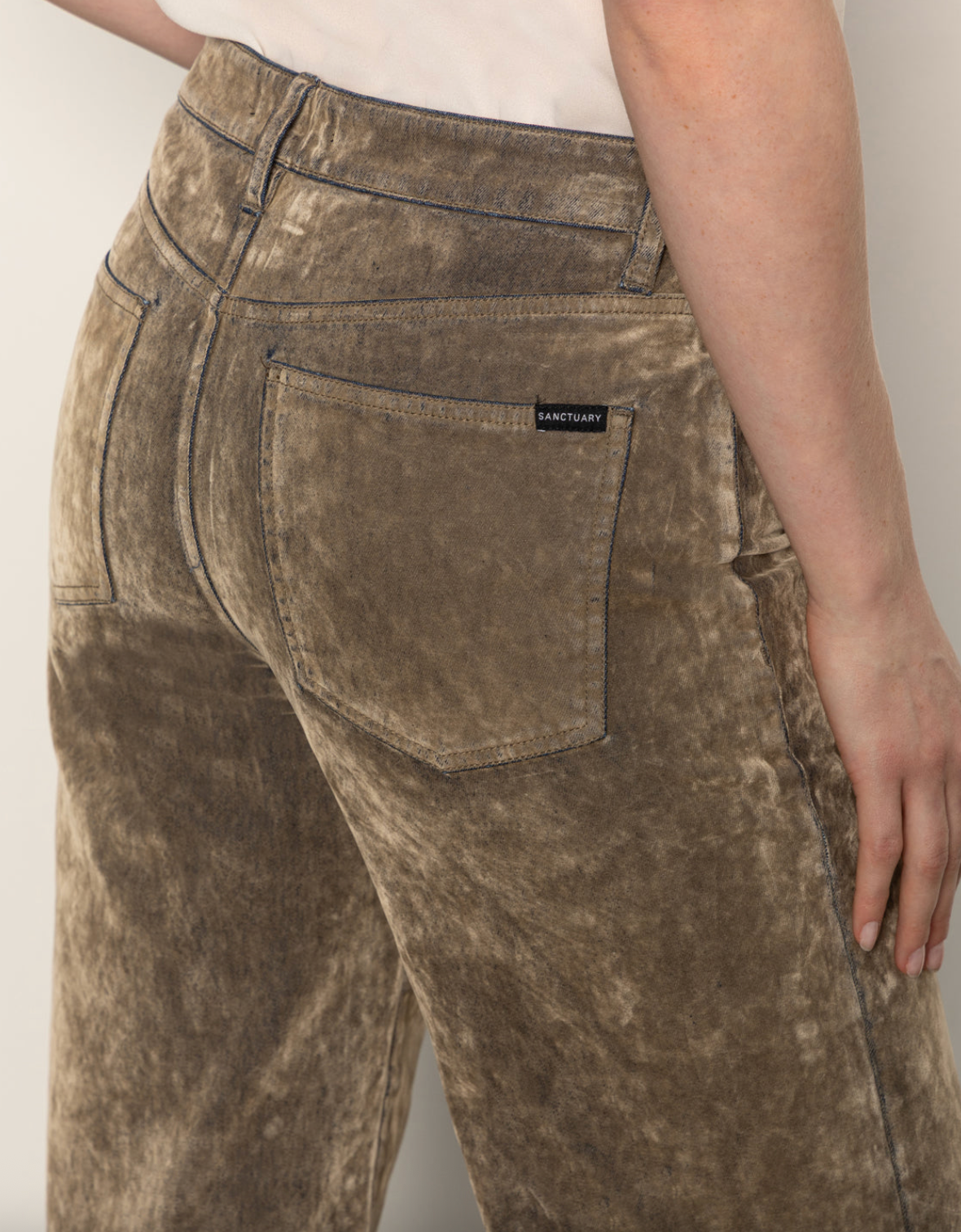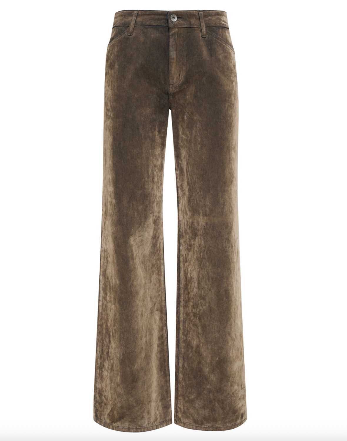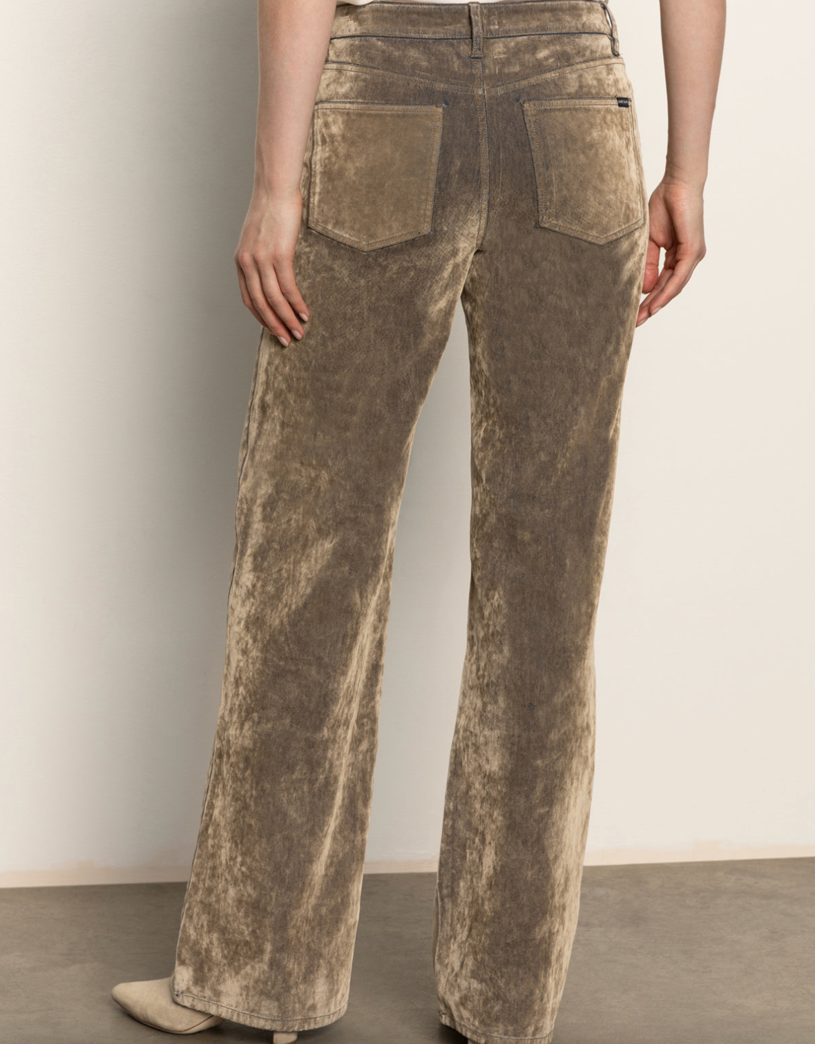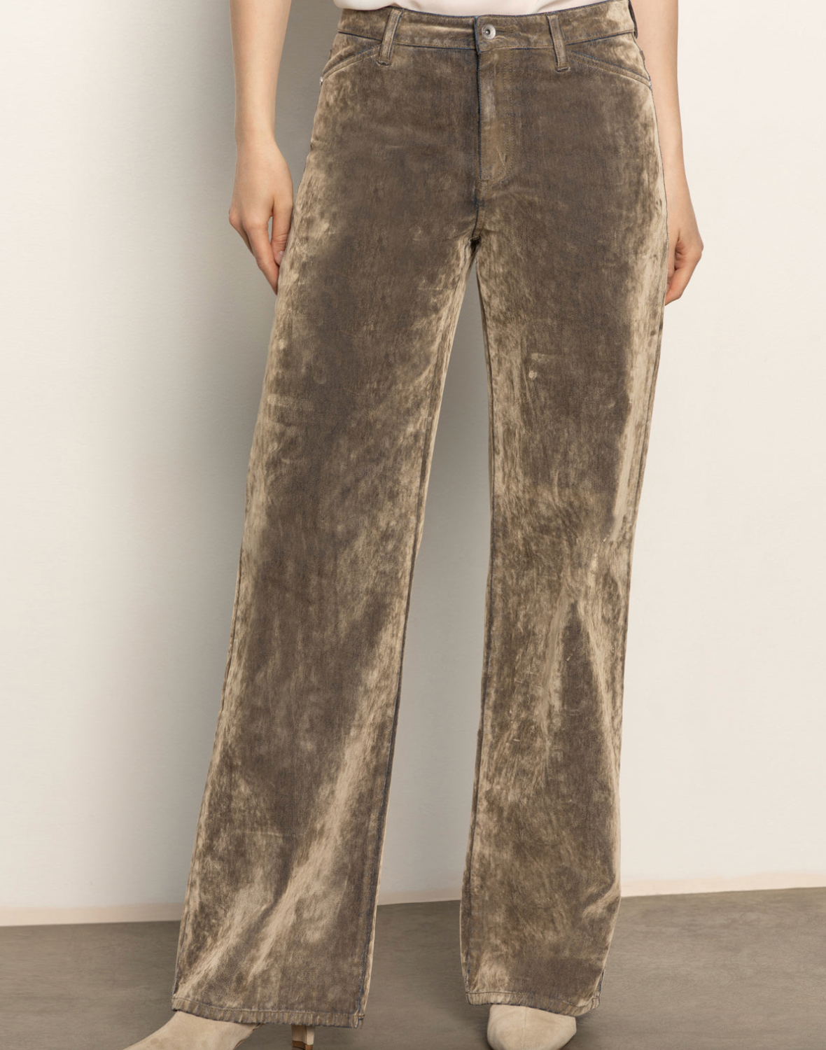 Crafted in soft yet structured cotton with a velvet-like flocked texture, these pants deliver a refined take on casual dressing. Designed with a standard rise and relaxed straight fit, they feature a timeless five-pocket look finished with a zip-front closure. Each piece is individually hand-dyed, making every pair truly one of a kind.