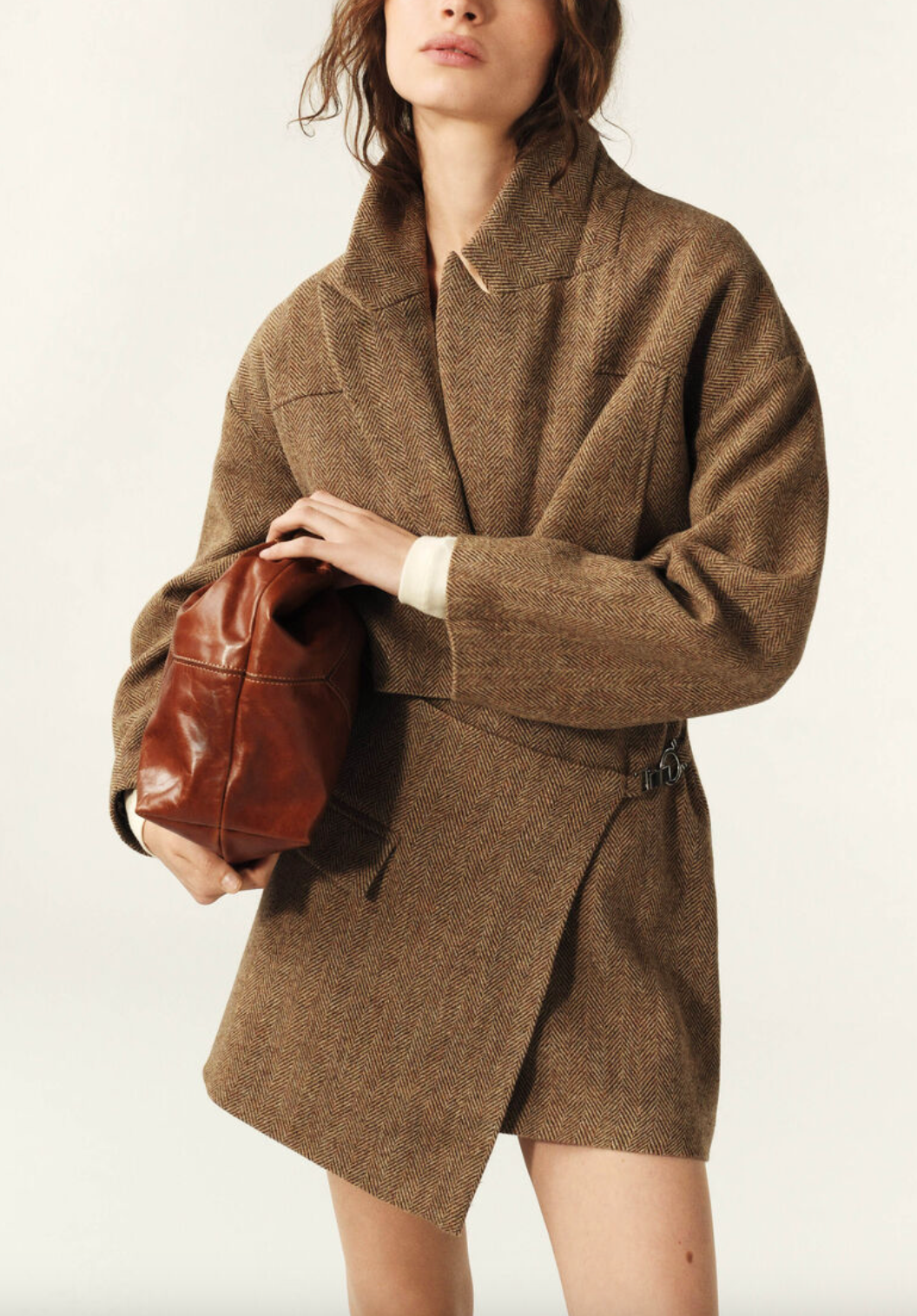 - Chic wrap style with a trapezoid cut for a unique silhouette