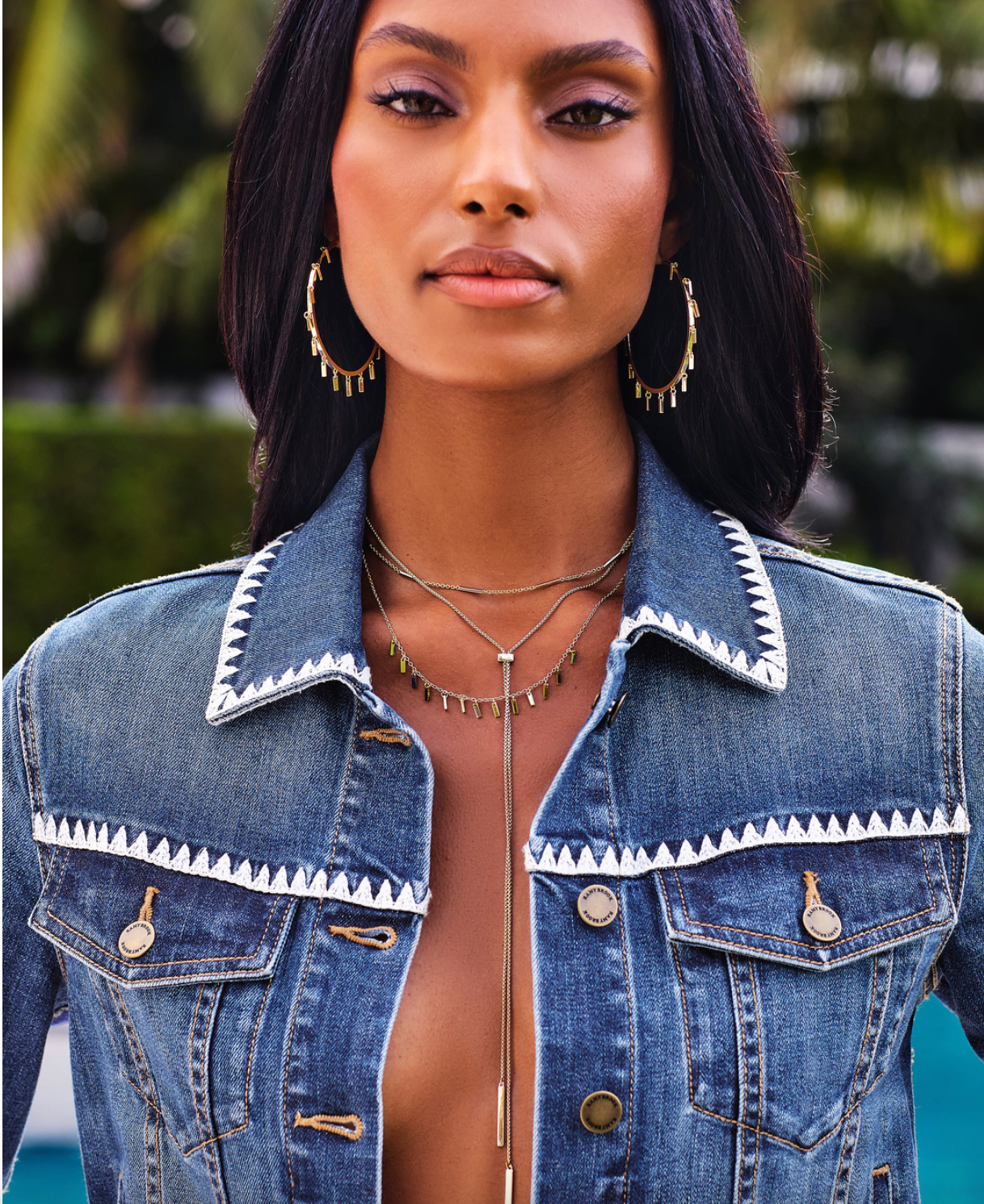 Timeless and versatile, the Carrie features delicate gold bar charms that drape down the neckline. Wear it to add understated elegance to your workwear or as a subtle complement to casual weekend looks.