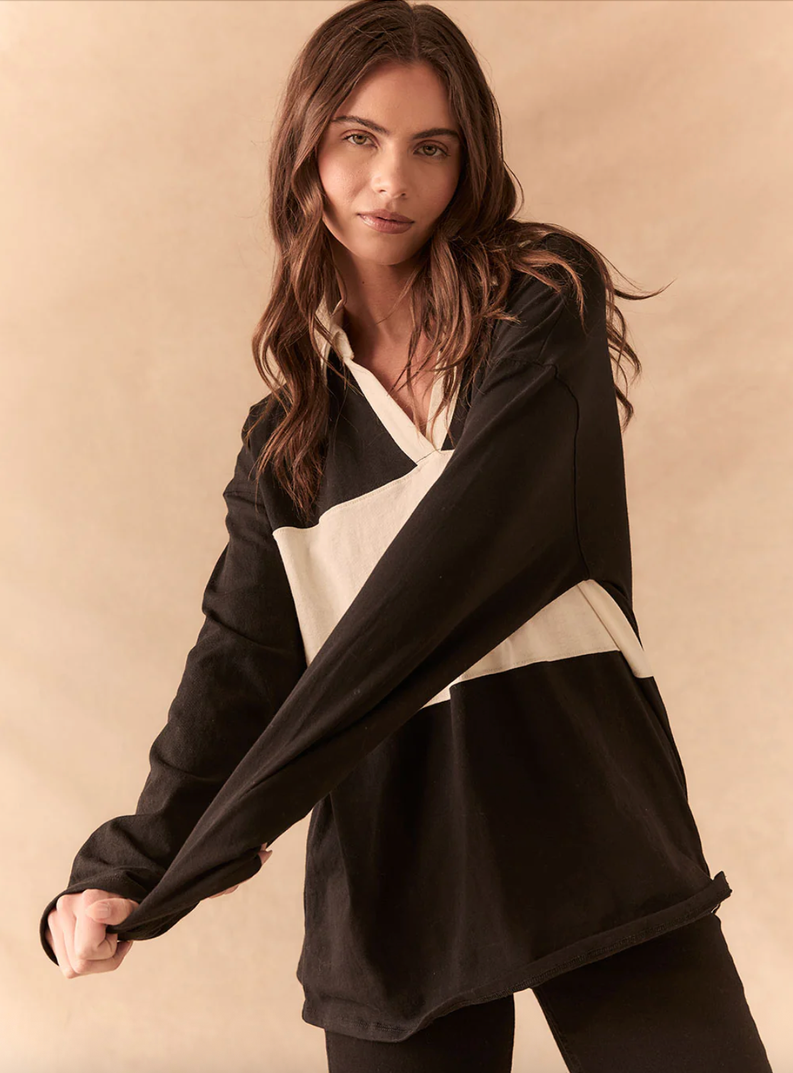 The Chico Long Sleeve brings effortless style to your everyday rotation with its classic black-and-white stripe design. Crafted from soft, breathable cotton, this relaxed silhouette delivers easy comfort and timeless appeal — perfect for days on the go.
