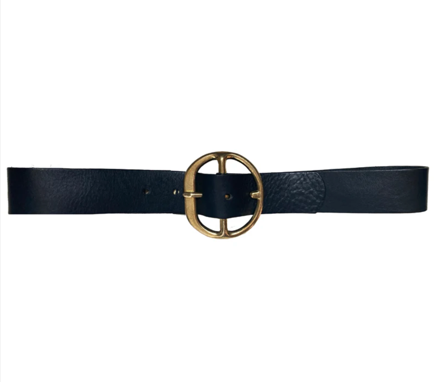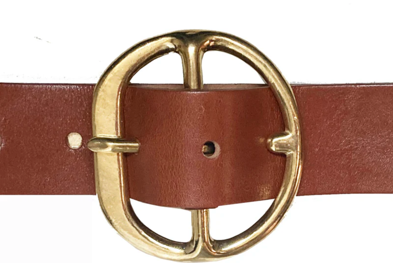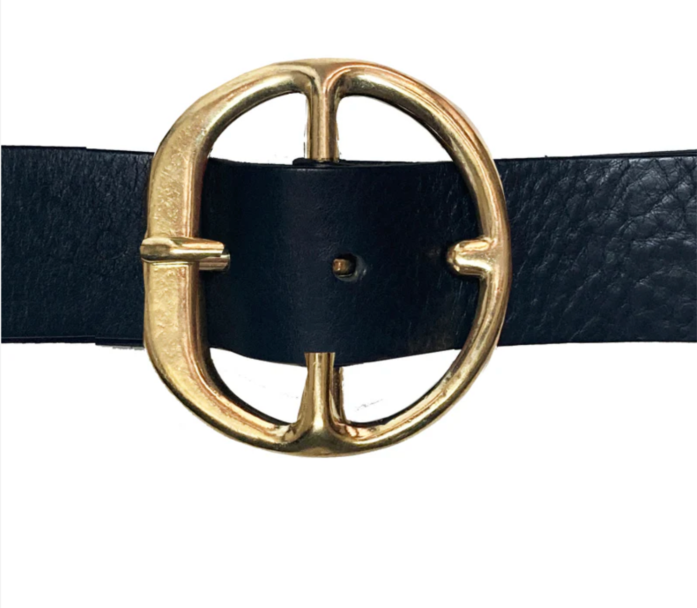 Make a statement with this chunky leather belt that’s as classic as it is cool. The oversized brass buckle brings serious attitude—perfect for adding edge to jeans or grounding a flowy dress. Designed to last and get better with wear, this belt delivers timeless style with a modern twist. Don’t be afraid to let the brass age naturally, or buff it back to gold when you're in the mood to shine.