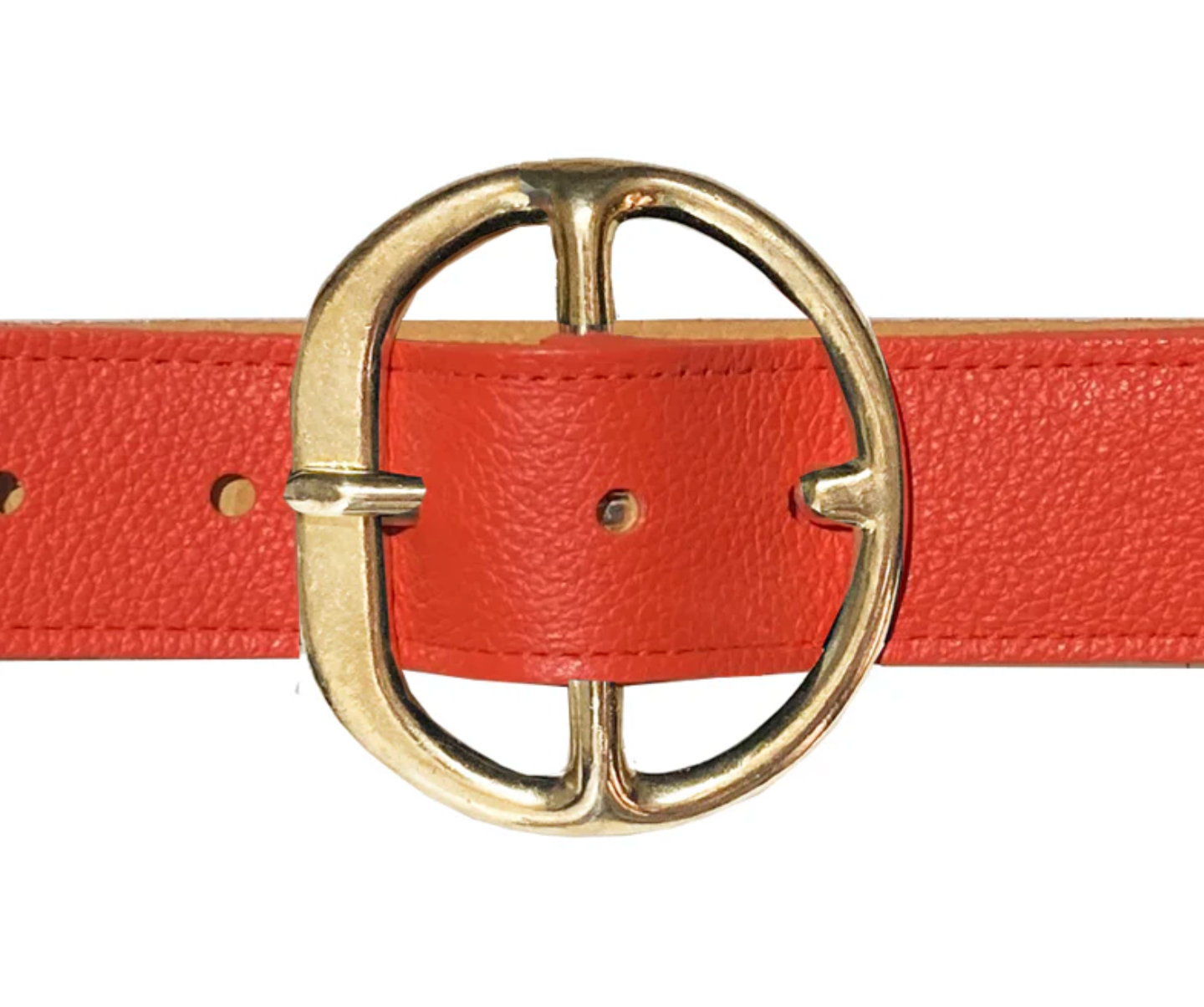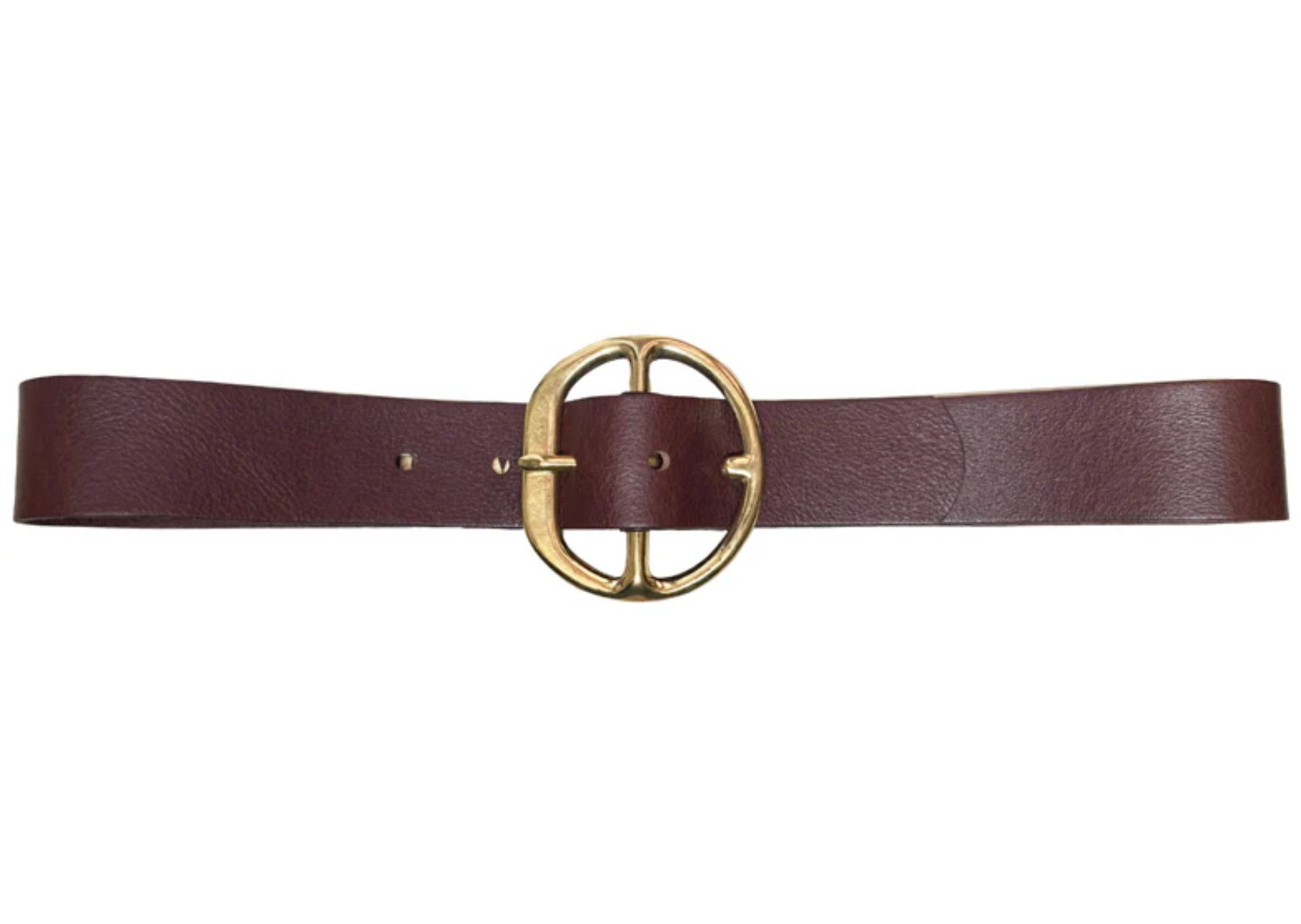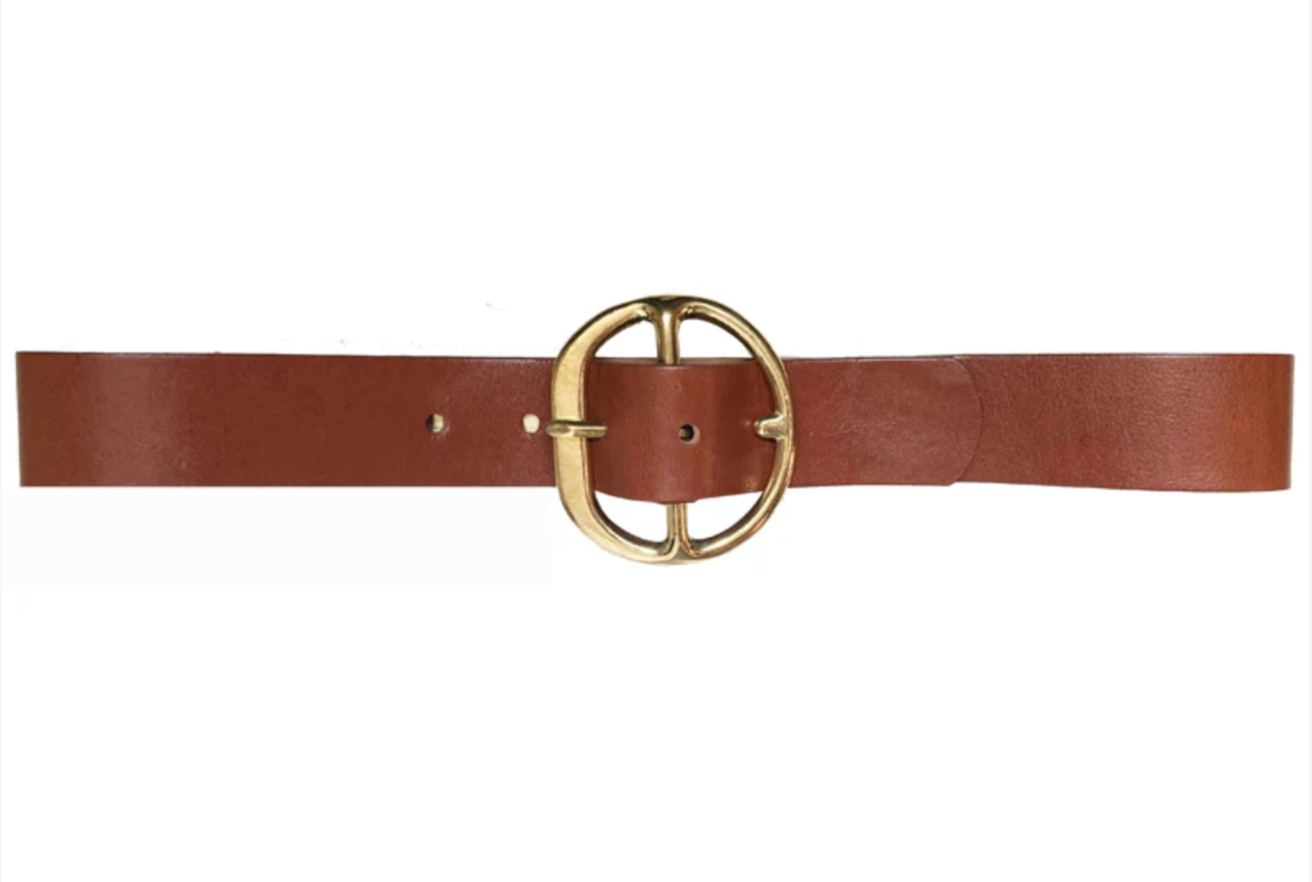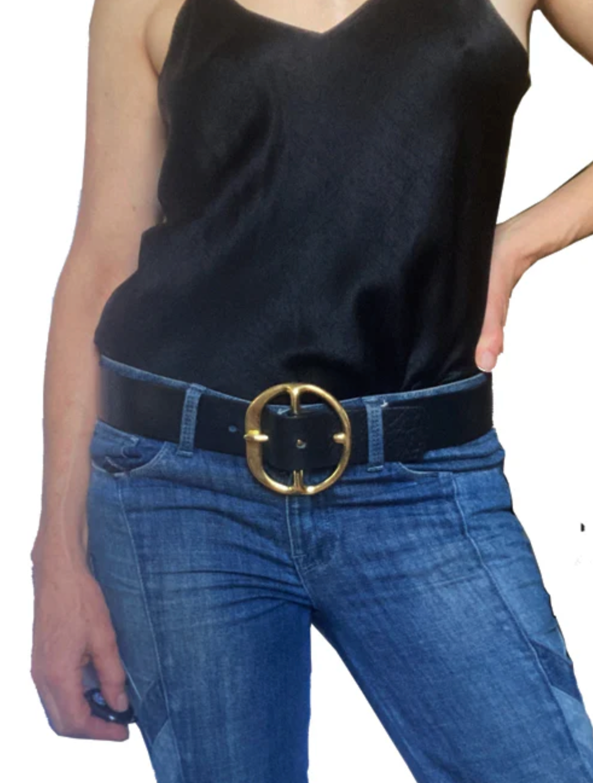 Make a statement with this chunky leather belt that’s as classic as it is cool. The oversized brass buckle brings serious attitude—perfect for adding edge to jeans or grounding a flowy dress. Designed to last and get better with wear, this belt delivers timeless style with a modern twist. Don’t be afraid to let the brass age naturally, or buff it back to gold when you're in the mood to shine.