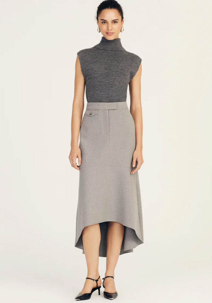 The Contro Turtleneck Knit Vest is an ultra soft merino wool style crafted with a slightly extended shoulder. It features a turtleneck and tall ribbing on the hem and collar.