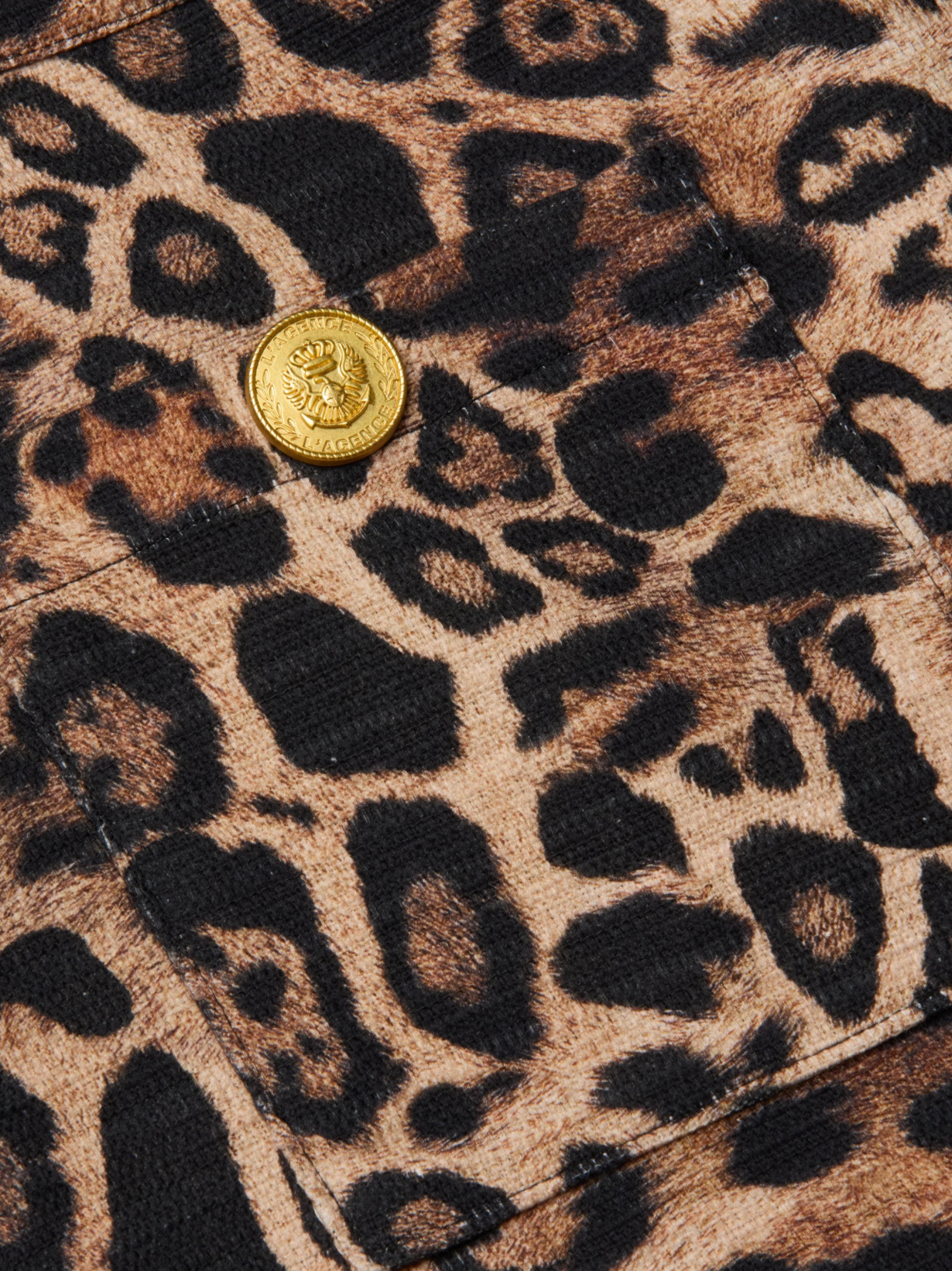 Mini in length and maximalist in spirit, the Cyra skirt puts a bold spin on a classic leopard print. Crafted in textured printed tweed with a comfortable low-rise fit, it sits securely on the hips while delivering standout style. Fully lined and finished with patch pockets and a clean invisible back zip, this mini balances statement appeal with everyday wearability. Style it with the matching Nyx jacket for a head-turning set, or keep it cool and effortless with an oversized white tee and boots.