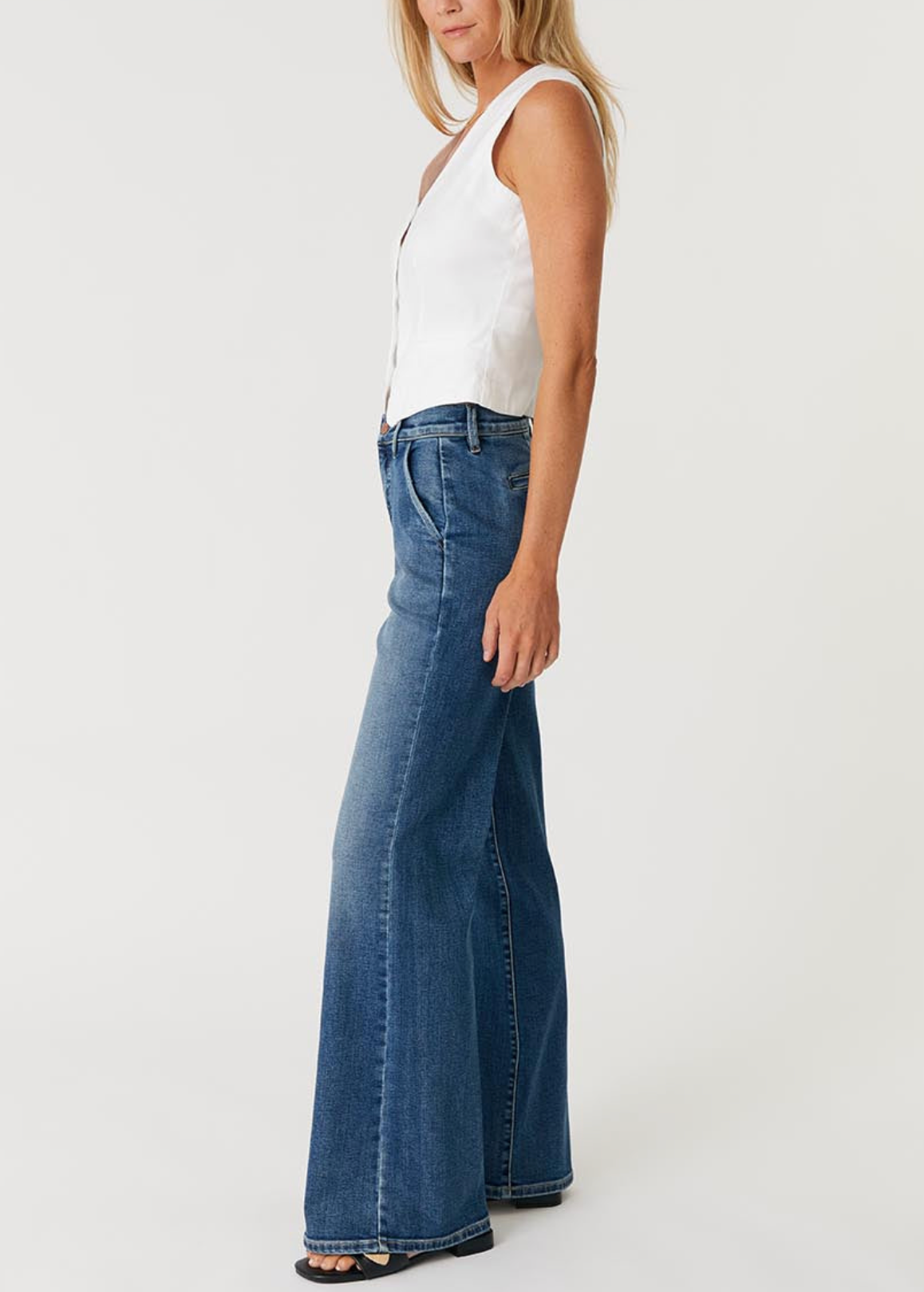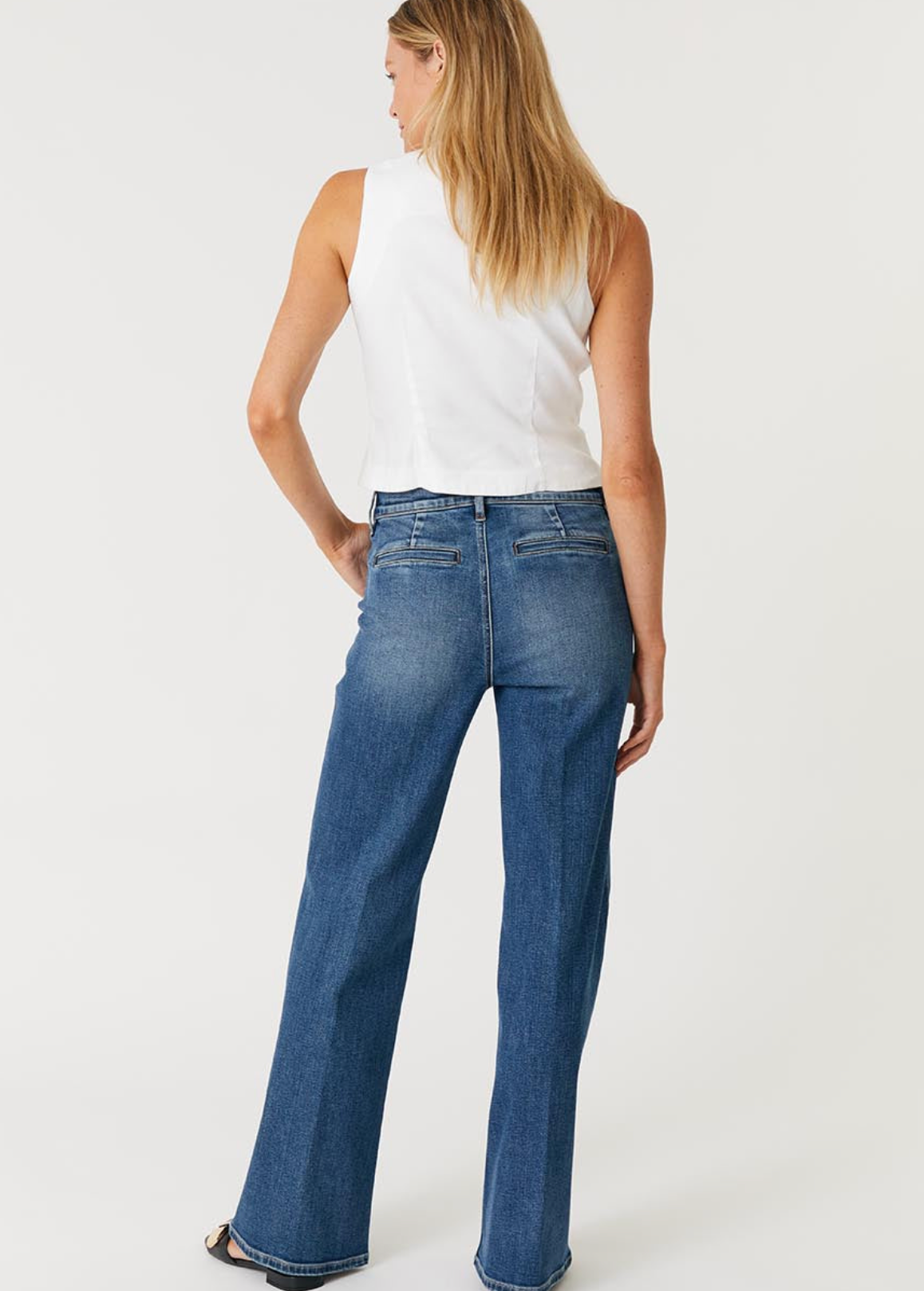 These Ellis Trouser Denim Jeans combine the sophistication of trousers with the casual comfort of denim. The high-rise fit enhances your shape while the wide-leg cut offers a relaxed, on-trend look. Featuring a stylish slit back pocket and a classic zip fly, these jeans are perfect for dressing up with a blouse or keeping it casual with a tee. A versatile medium dark wash ensures they pair effortlessly with anything in your wardrobe.