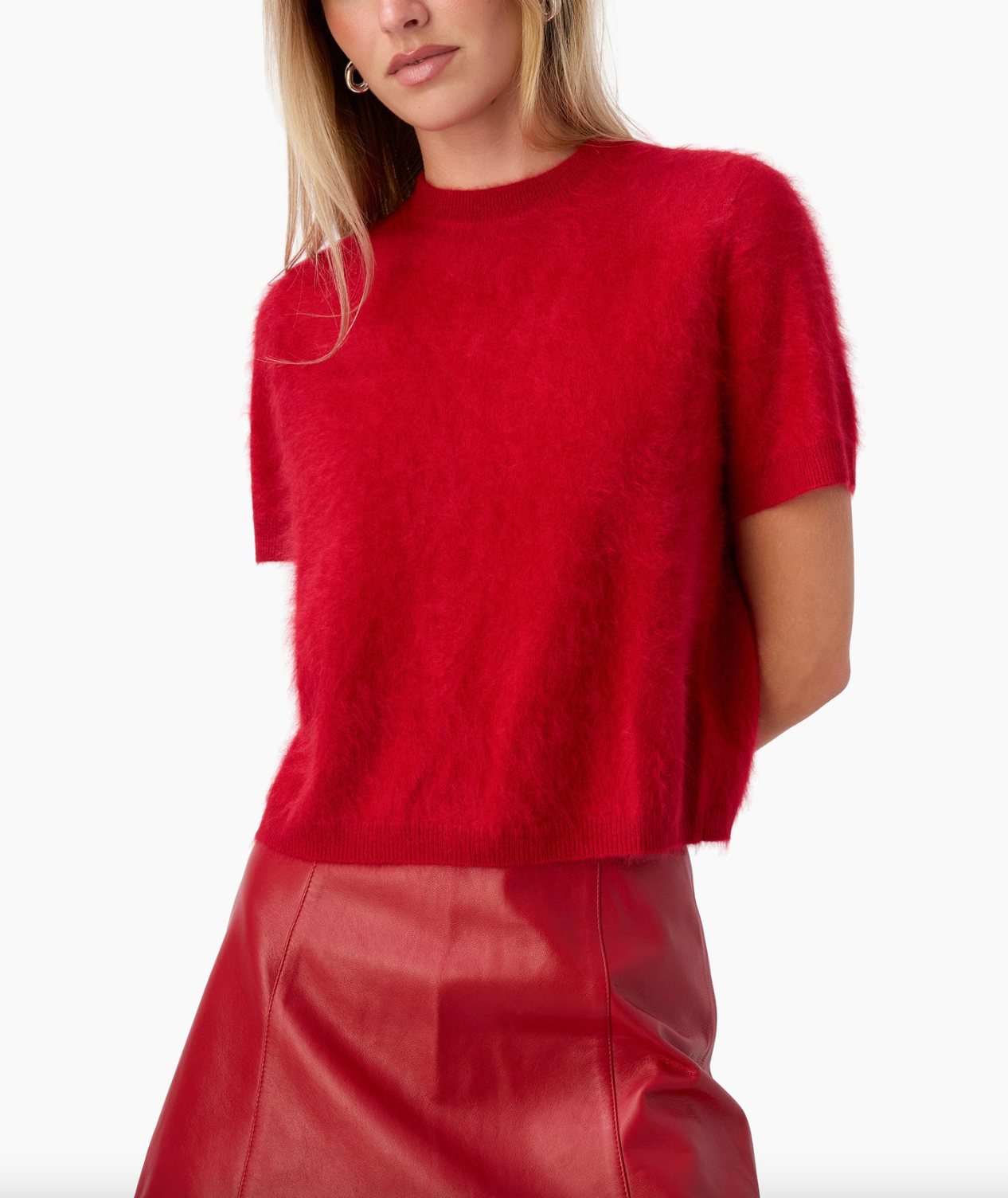 Luxuriously soft and effortlessly refined, this cropped short sleeve sweater is crafted from 100% brushed cashmere. Designed with a classic crew neckline and a modern cropped silhouette, it’s perfect for pairing with high-waisted trousers or skirts for an elevated everyday look.