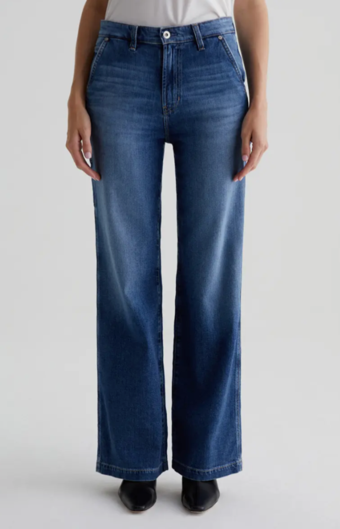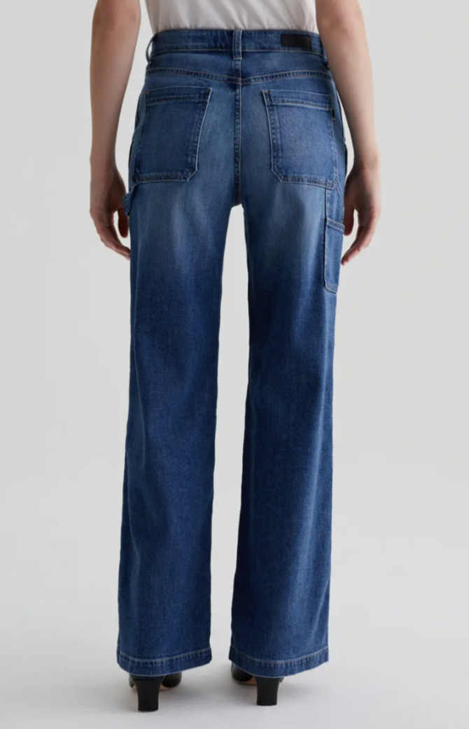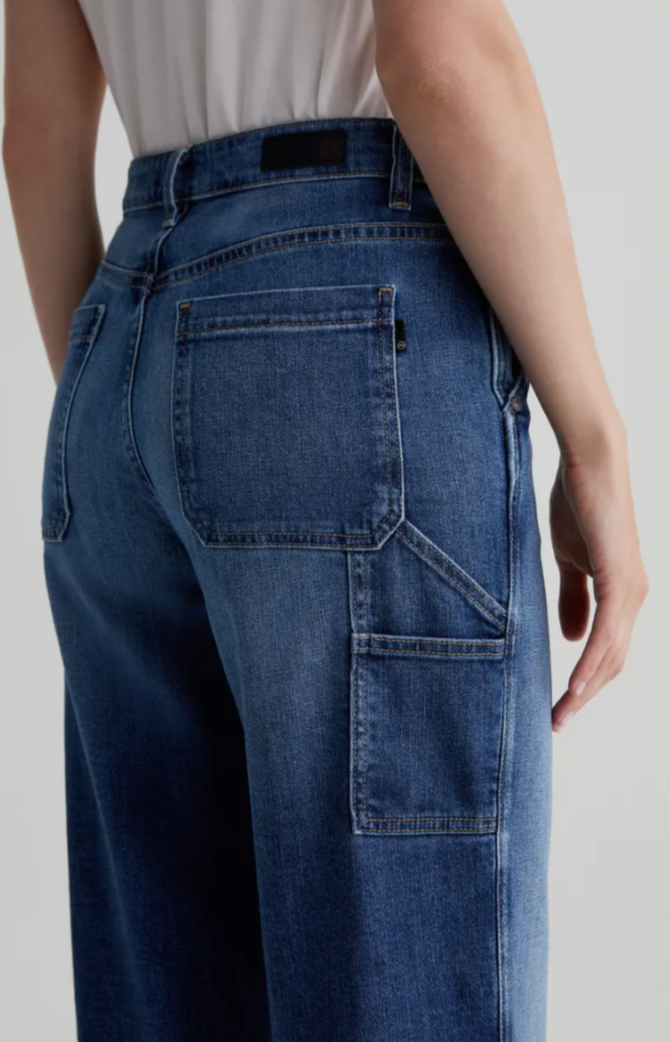 A remake of a classic jean with a super soft, stretch-denim. Tailored with a high rise and full-length wide legs and plenty of pockets for utilitarian detail making up a quintessential carpenter style jean with a comfy fit.