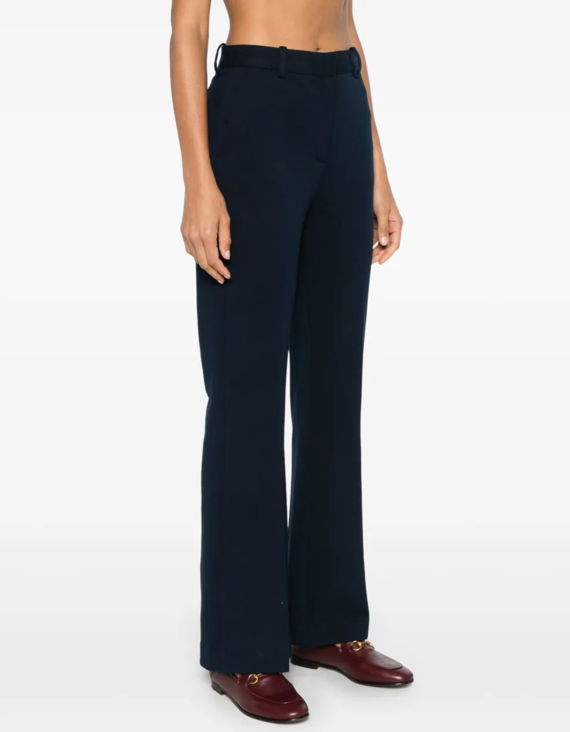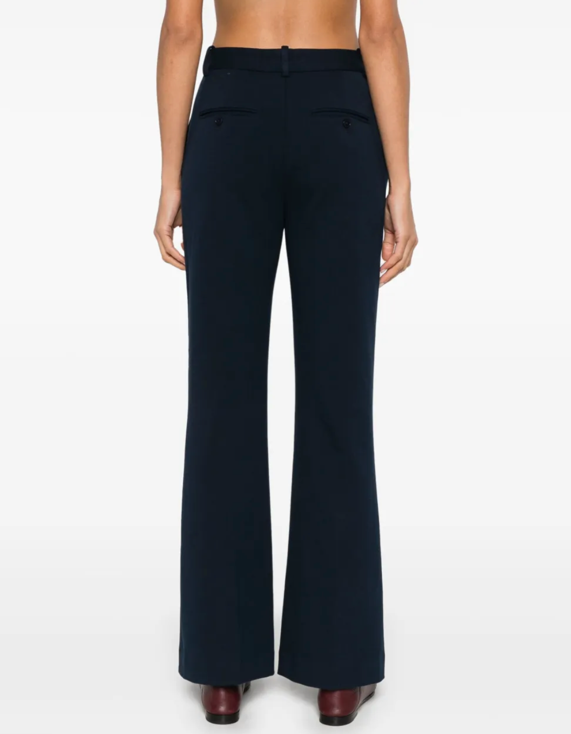 Update your wardrobe with these stylish stretch-cotton flared trousers, designed for both comfort and sophistication. Crafted from a soft jersey-textured fabric, these trousers feature a concealed front button, hook, and zip fastening for a sleek finish. Belt loops add versatility, allowing you to accessorize with your favorite belt. The pressed crease offers a sharp, tailored look, while the flared silhouette creates a flattering shape. Two side slit pockets and two rear button-fastening jetted pockets combine style with practicality, making these trousers perfect for any occasion. Perfect for both work and weekend wear, these trousers bring a modern twist to a classic style.