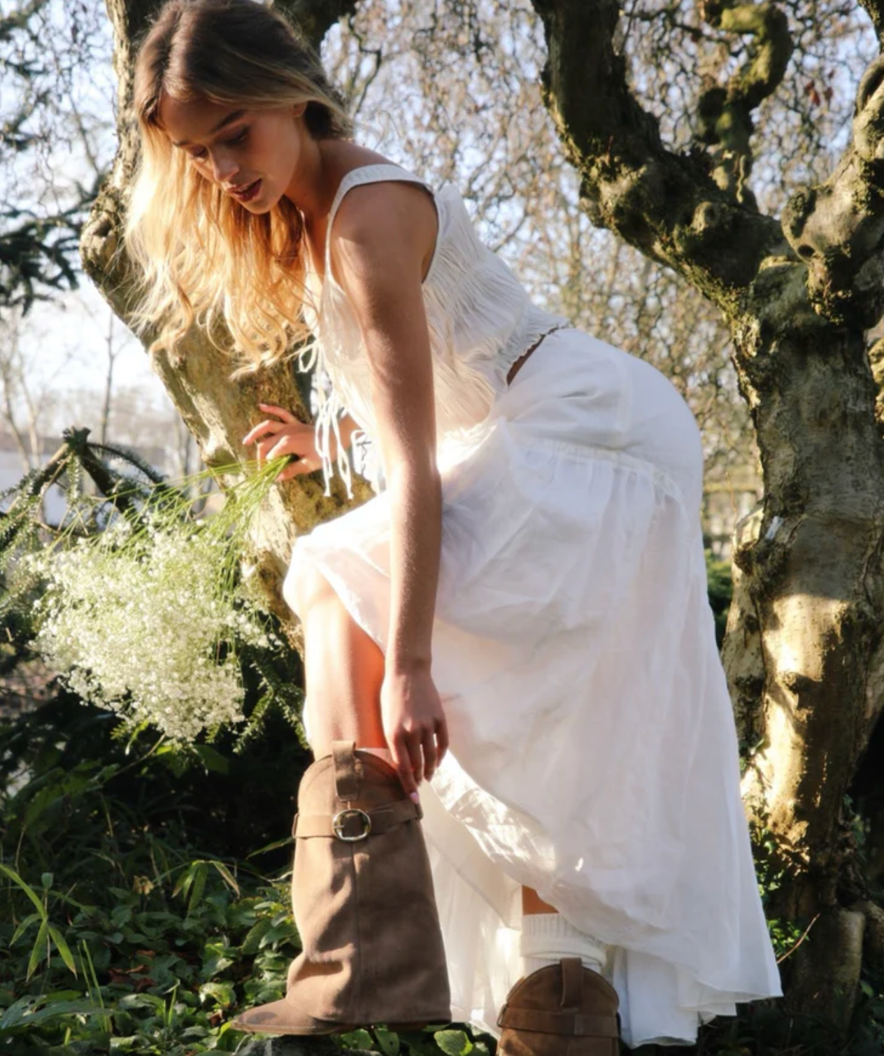 Effortlessly blending Western-inspired charm with modern sophistication, these boots are designed to make a statement. Crafted in supple leather, they feature a pointed toe and a gold-tone buckle for a refined finish. Pair them with denim, skirts, or dresses for versatile styling.