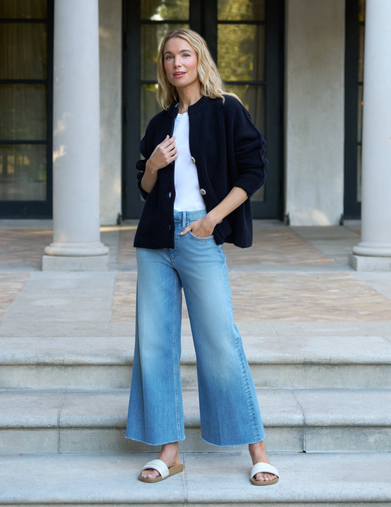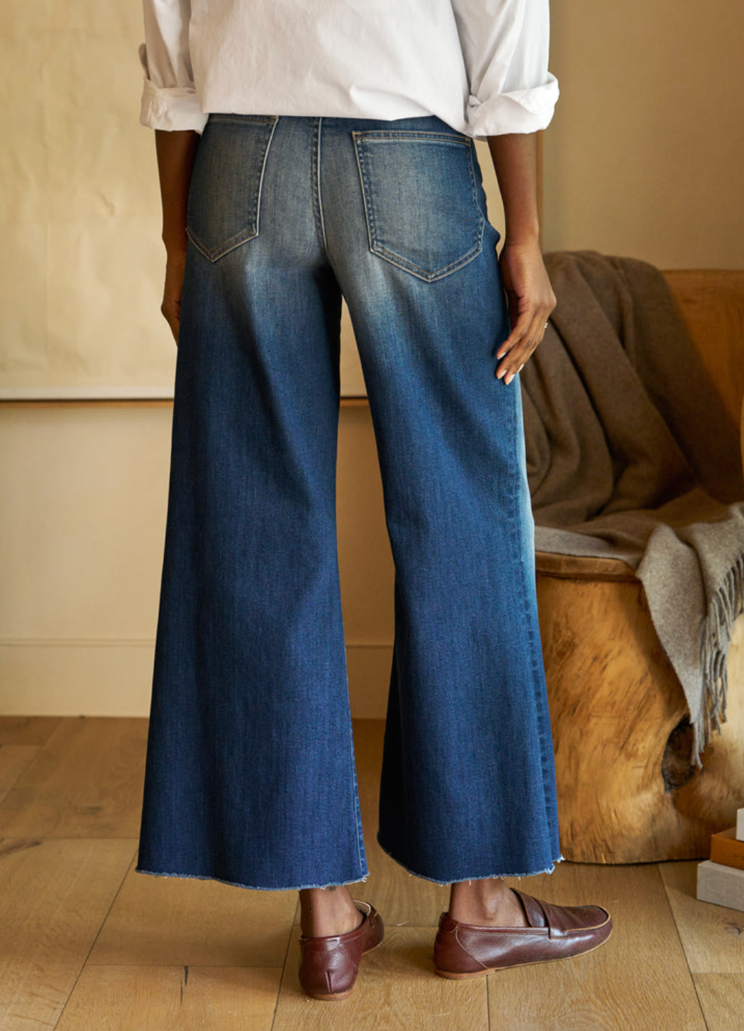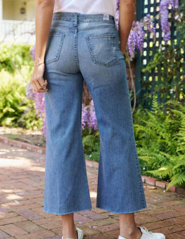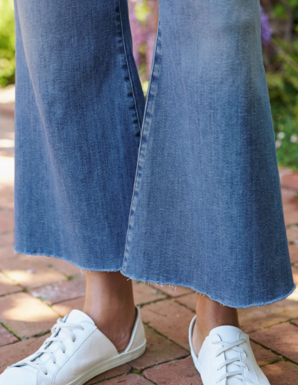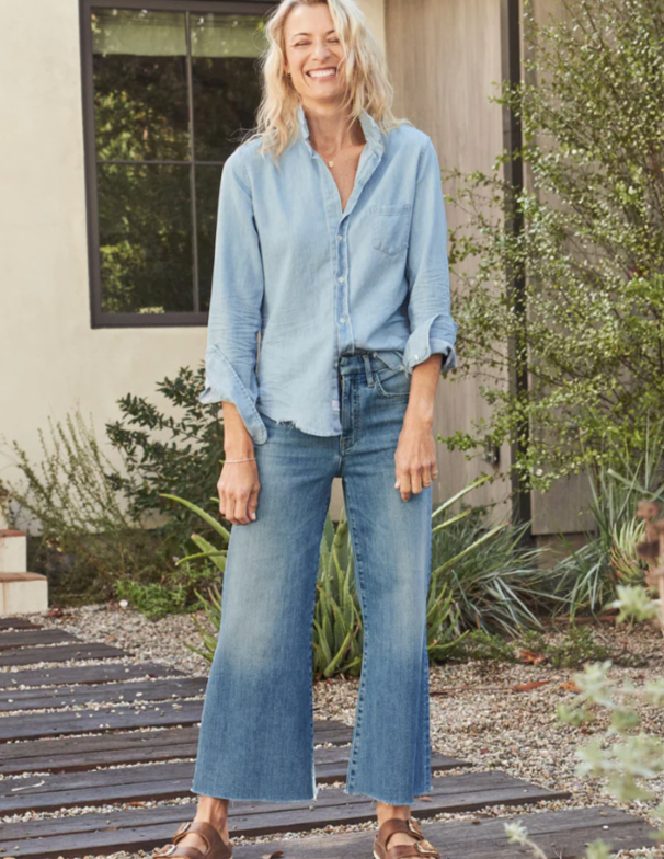 Introducing Galway, the newest addition to our lineup! Frank & Eileen brings you their first-ever wide-leg style jean in luxurious Italian Dream Denim, inspired by the laid-back and carefree spirit of our beloved Irish city. With a cropped length, a hand-distressed raw hem, a wide-leg fit, and an elevated trouser waistband, Galway ensures both style and comfort. Embrace the relaxed yet chic vibes of Galway and elevate your denim collection with this irresistible pair.