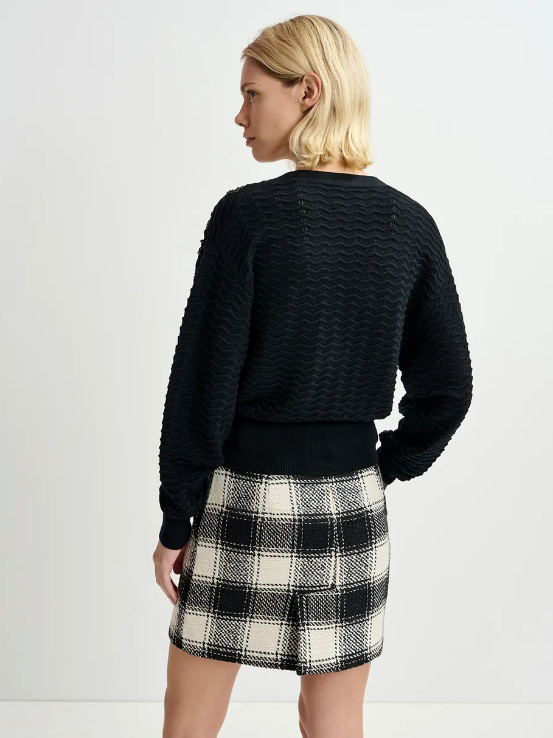 This check-patterned mini skirt is a timeless addition to your wardrobe. Featuring a subtle A-line shape, it offers a flattering fit that suits various styles. The small slit at the back adds a hint of flair, while the zip and button closure ensures a secure and comfortable fit. Versatile and chic, this mini skirt can easily transition from day to night, making it a must-have staple for any fashion enthusiast.