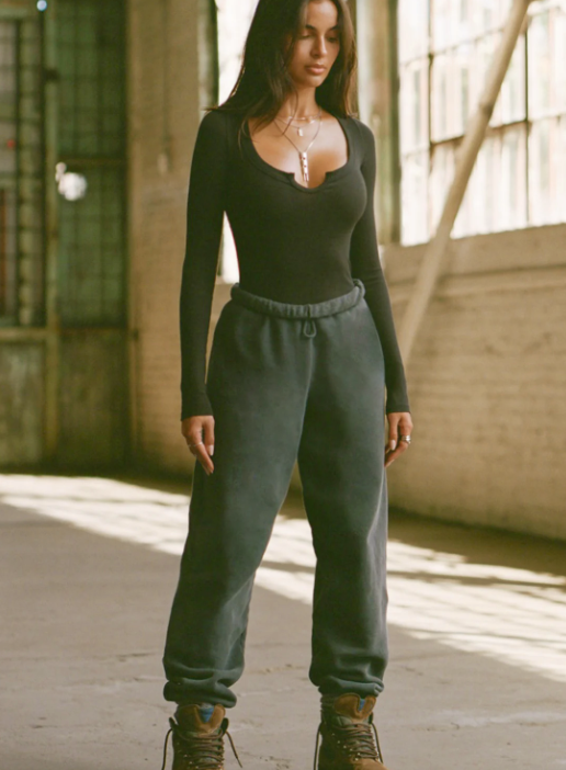 A long sleeve scoop neck featuring a notched henley neckline and a flattering rounded hem. Feel a subtle pop of texture in this tight-knit ribbed fabric. It's stretchy, comfortable and forms perfectly to your body.