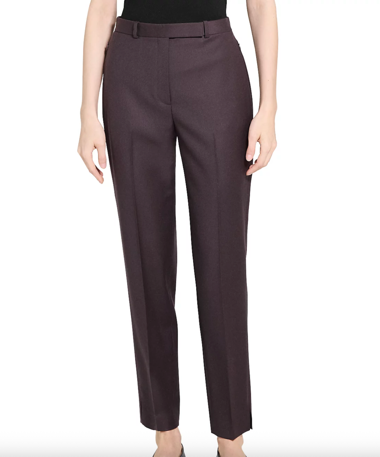 Add to your office style with our Tapered Slim Crop Pant, expertly designed for a sleek, cropped silhouette. Crafted from premium bi-stretch twill fabric, these pants maintain their shape wear after wear. Made from fine Italian wool flannel, they offer a soft, lightweight feel with a sophisticated finish. Perfect for both office wear and casual outings, these versatile pants are a must-have addition to your wardrobe!