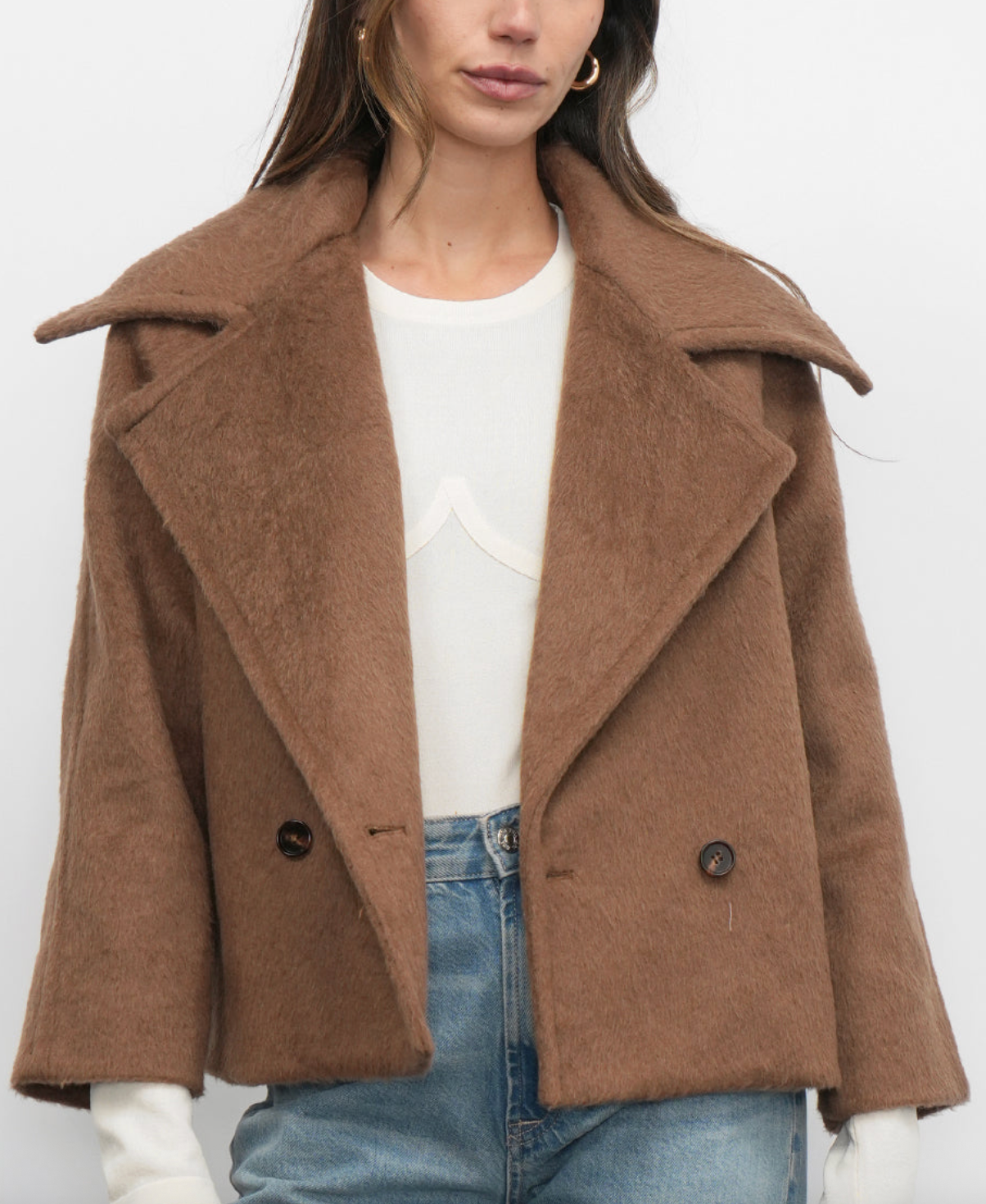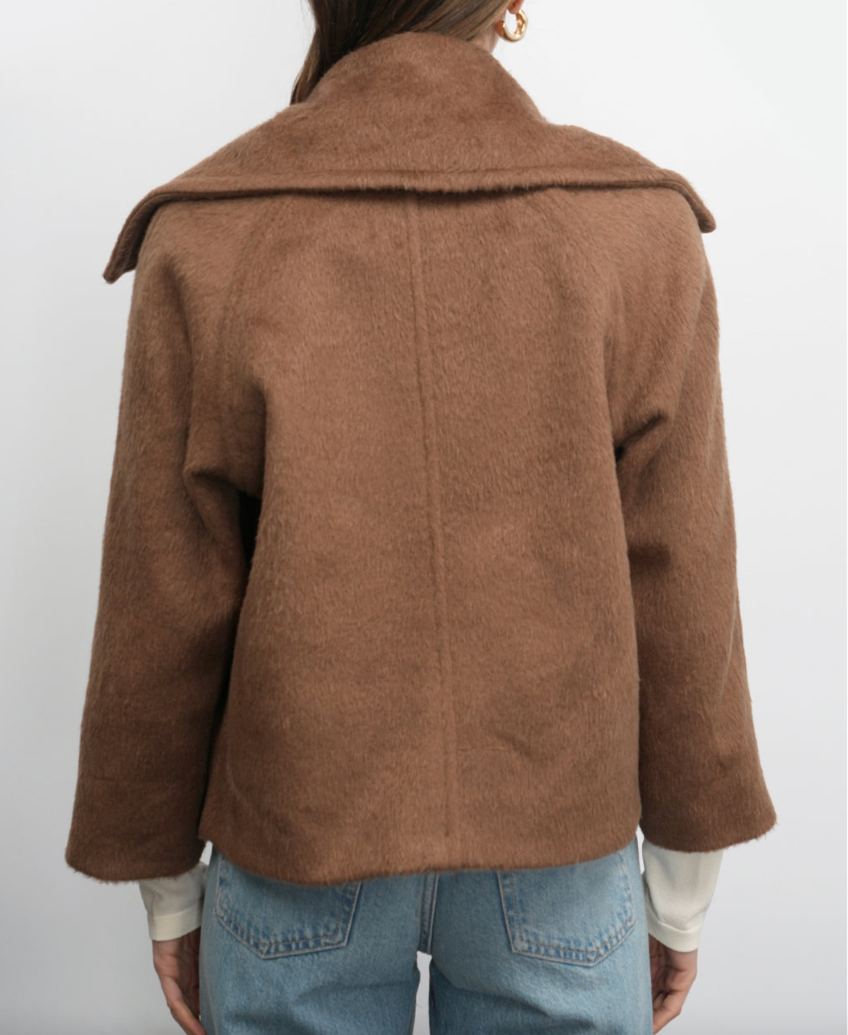 Effortlessly chic, this cozy coat is a versatile addition to any wardrobe. Crafted from a soft, plush blend, it features a relaxed, cropped silhouette with dropped shoulders and a single-button front closure, perfect for layering over both casual and polished looks.