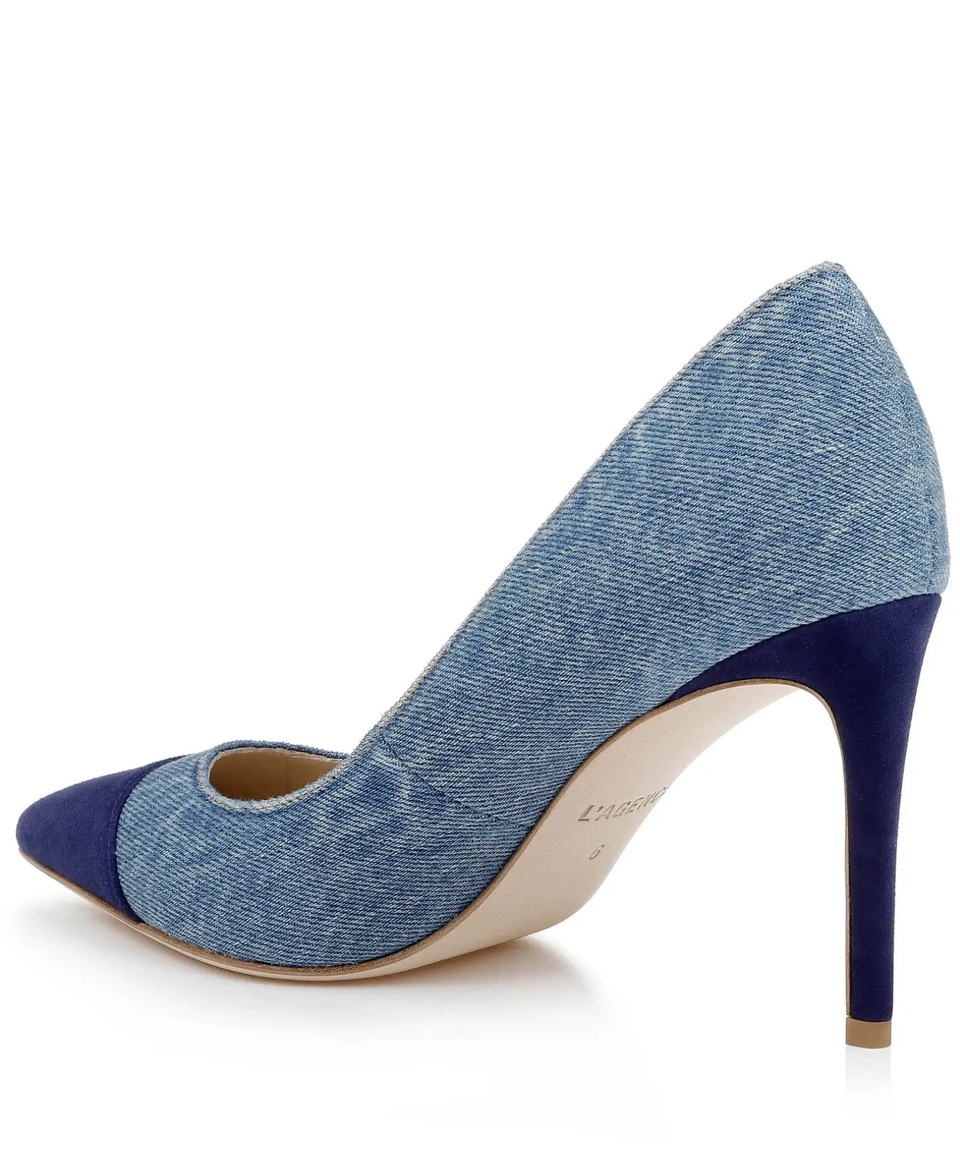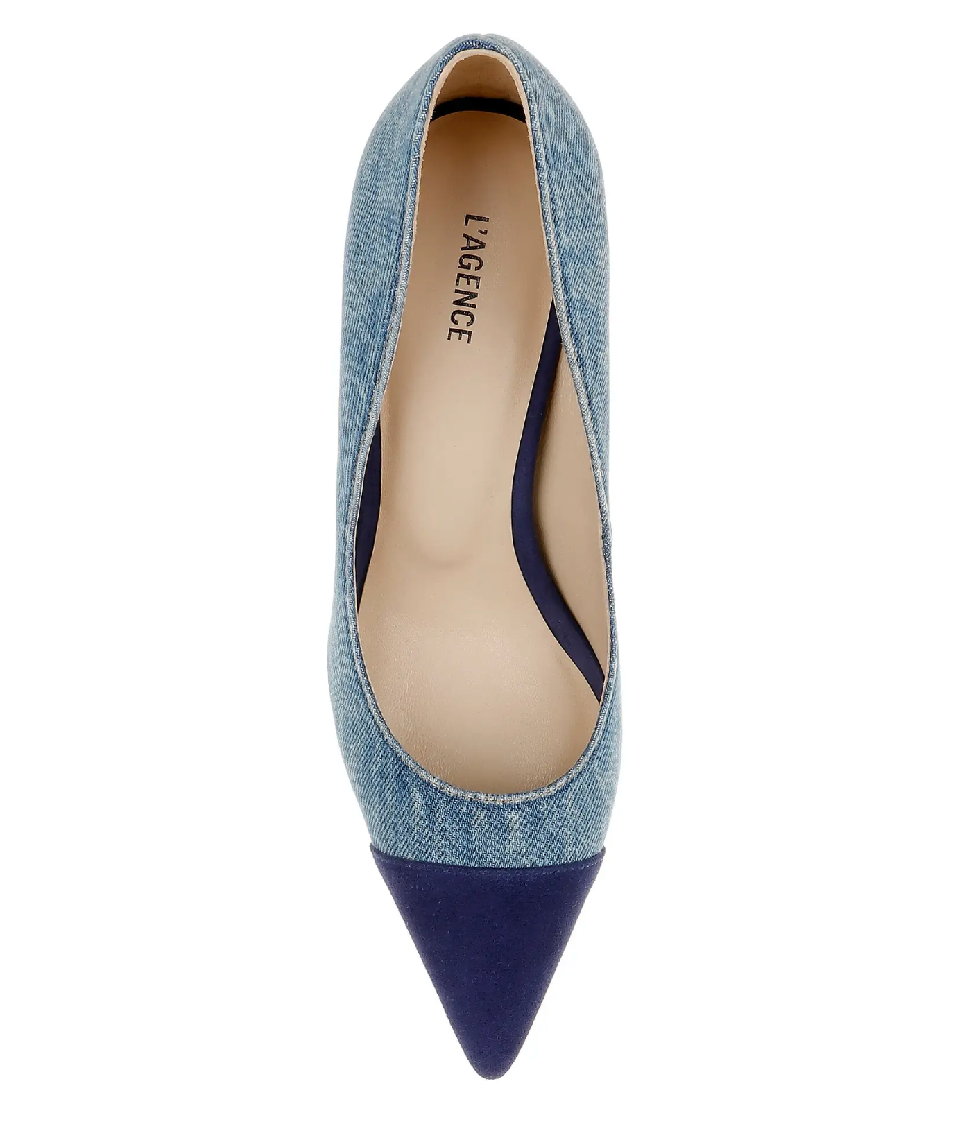The Kendelle pump offers a fresh take on a timeless classic, blending casual-cool denim with the polish of a contrasting navy suede cap toe. Set on a sharp point toe and an elegant mid-height heel, this pair delivers effortless sophistication with a modern edge. Style it with tailored suiting for an unexpected twist, or lean into its off-duty appeal with relaxed denim and crisp shirting. A versatile statement heel designed to elevate everyday dressing.