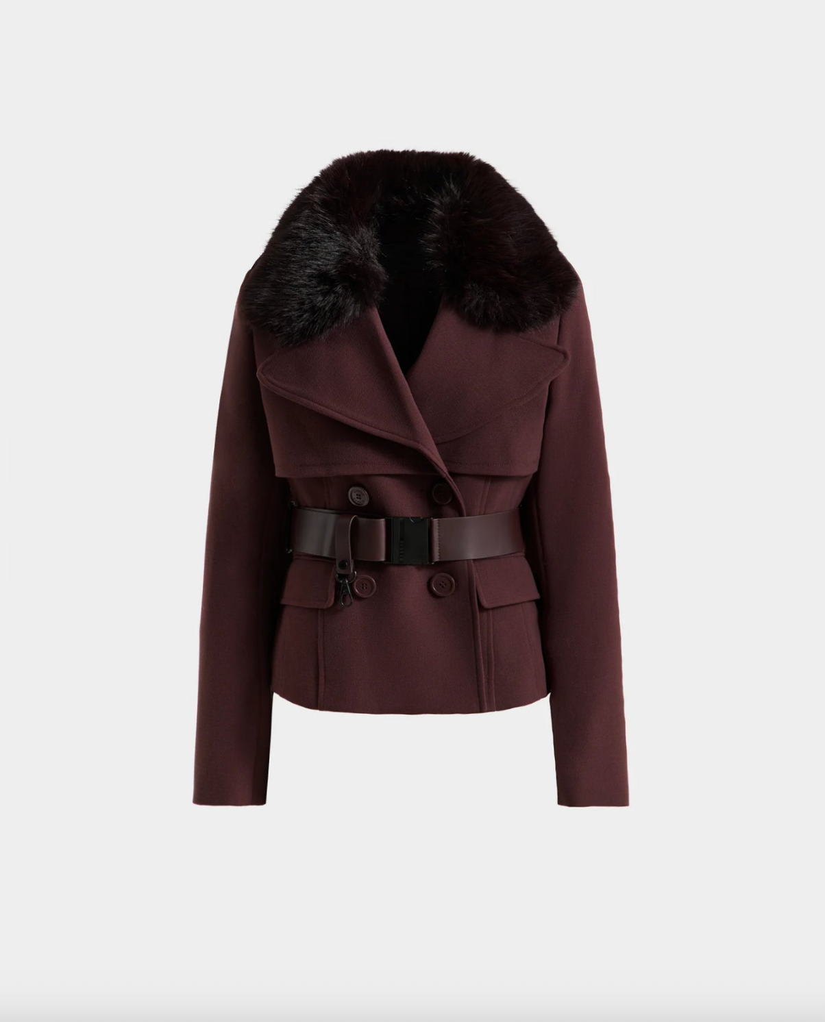 A masterclass in polished versatility, the LINDSAY coat blends structured sophistication with modern adaptability. Designed in a semi-fitted silhouette, it flatters the figure while allowing easy movement. A removable vegan leather belt cinches the waist for a feminine shape, and the detachable faux fur collar adds a touch of luxe that can be styled up or down. Crafted from a refined suiting-inspired fabric blend, this transitional piece offers effortless warmth and elegance—perfect for fall layering or cool city days.