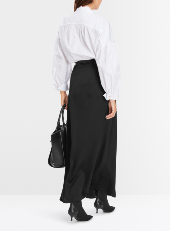 Elevate your look with this stunning pencil skirt, featuring a deep slit that adds a touch of flair. Crafted with stretch content for exceptional comfort, this ankle-length skirt fits beautifully and moves with you. It fastens at the side with a discreet zip, ensuring a sleek silhouette. The attached waistband strap, adorned with shiny metal Marc Cain lettering, adds a chic detail that makes this skirt perfect for both professional settings and evening outings.