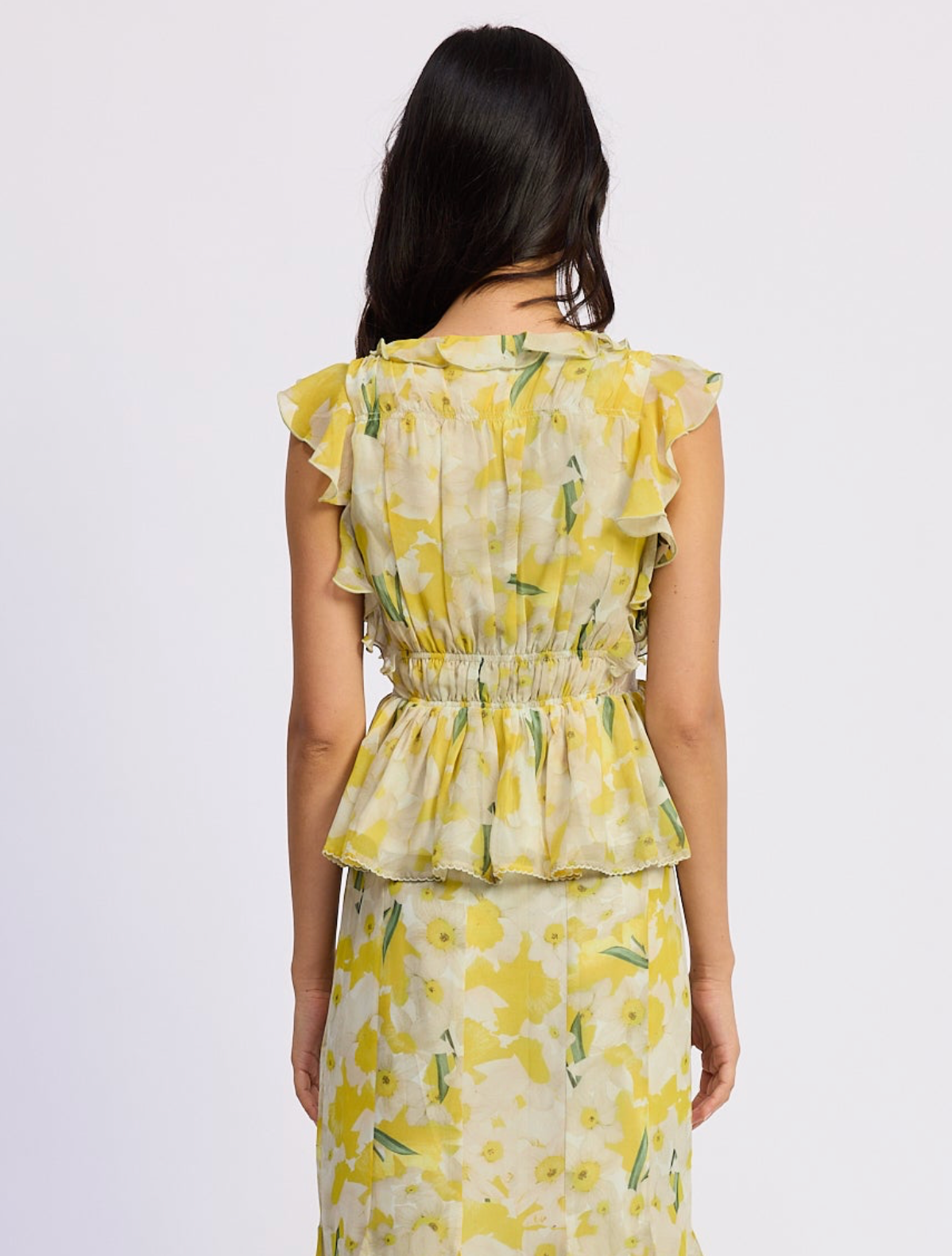 - Waterfall ruffle peplum design