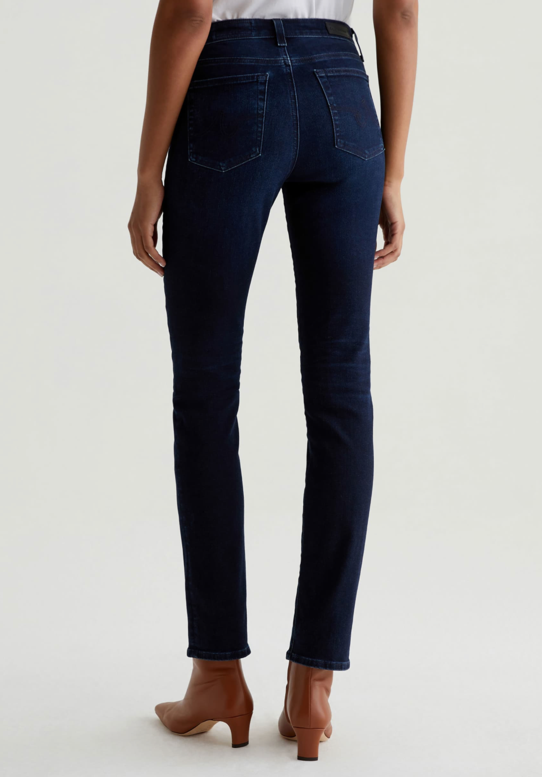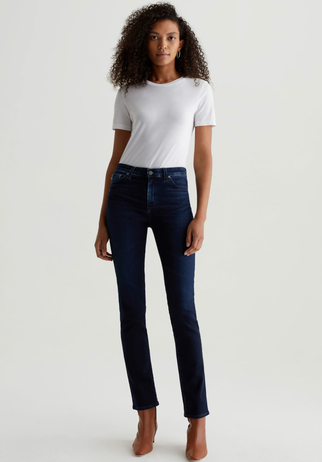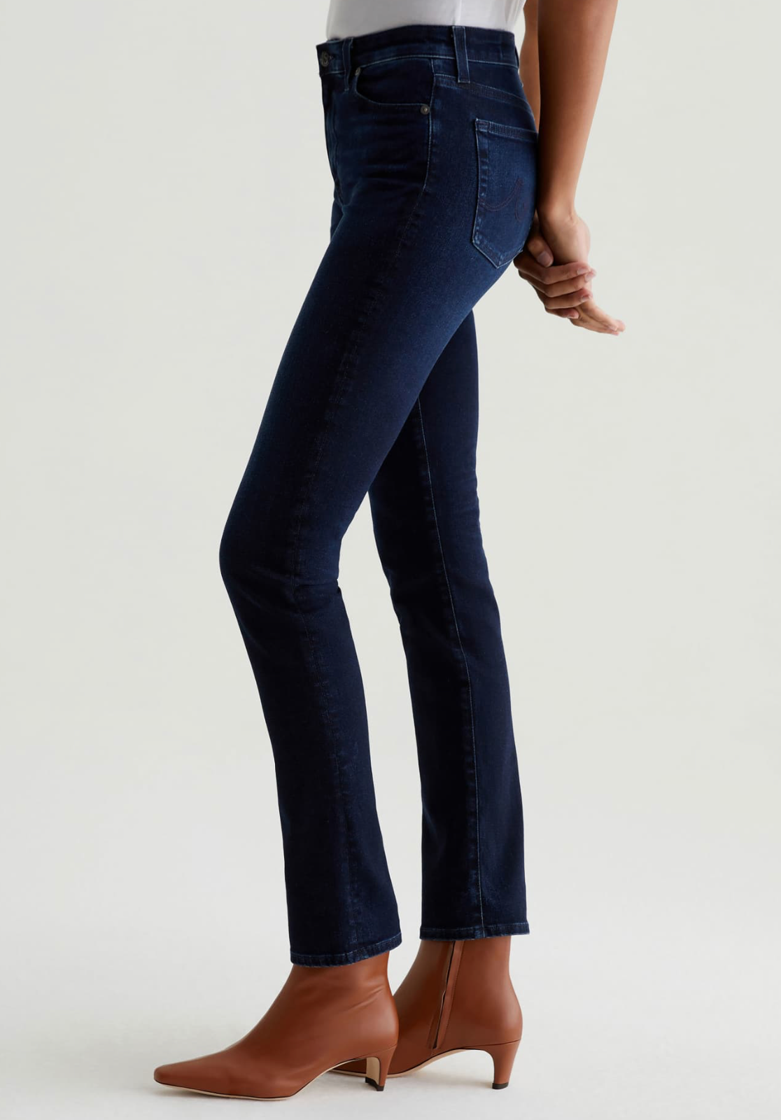 A new take on a best-selling fit, the Mari Extended by AG Jeans features a longer inseam and worn-in back hems for a modern edge. Crafted from soft, 10 oz. Rouge Advance Stretch Denim, this slim-straight silhouette flatters with a high-rise waist and sleek fit through the legs. The modern indigo wash adds a versatile, polished touch—perfect for dressing up or styling with casual basics. Designed for comfort, shape retention, and everyday wear.