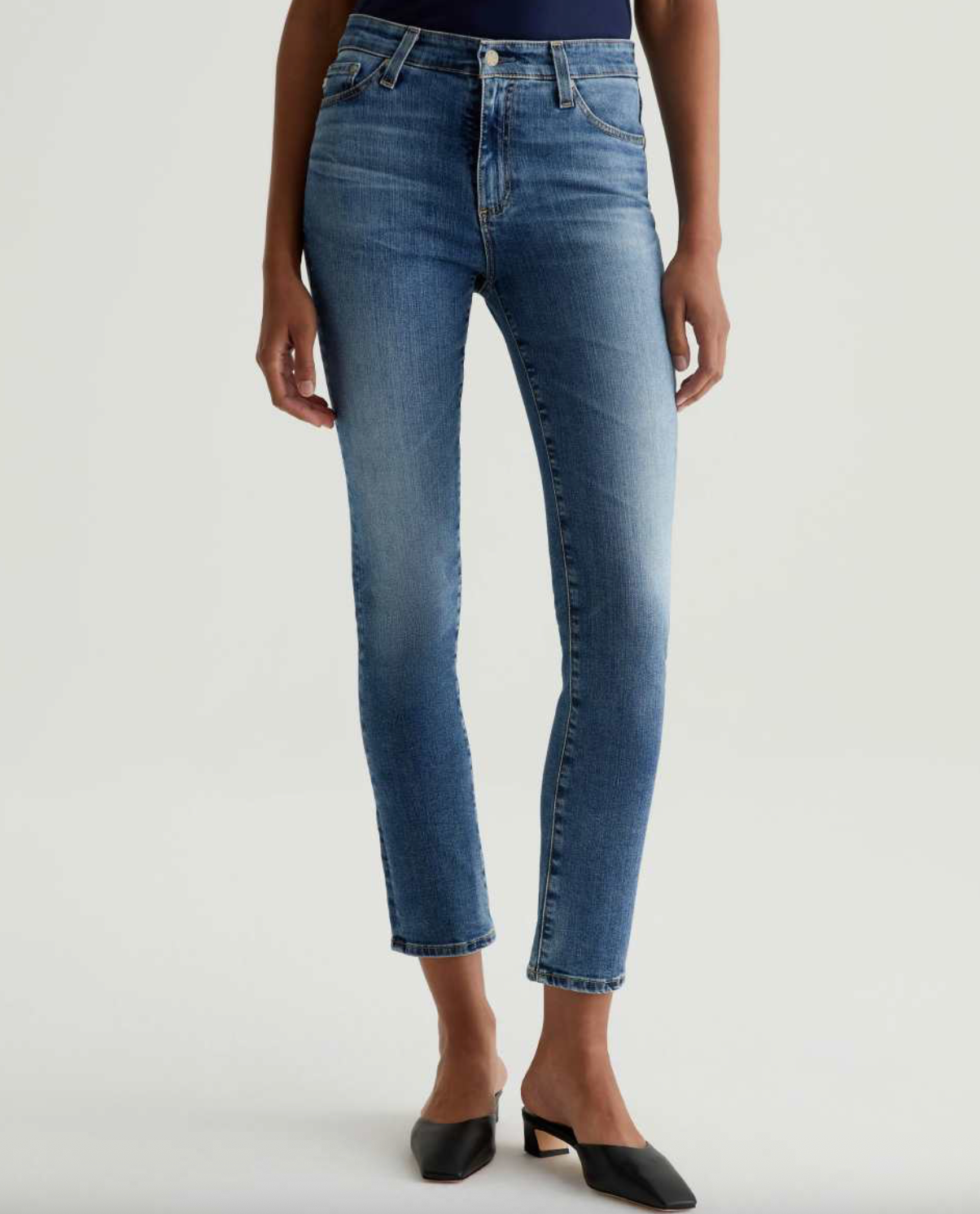 The Mari High Rise Straight Leg Jean offers a timeless silhouette with modern refinement. Designed to sit high on the waist and gently hug the hips, this style falls to a straight leg with a subtly slim opening. Crafted from a premium cotton blend with a touch of stretch, it delivers structure, comfort, and effortless everyday wearability.