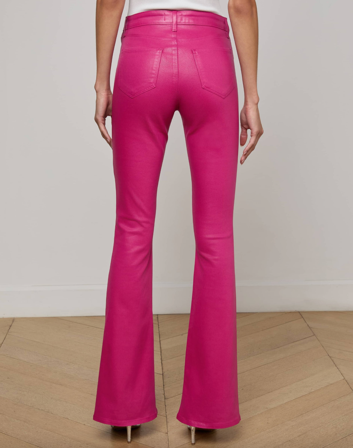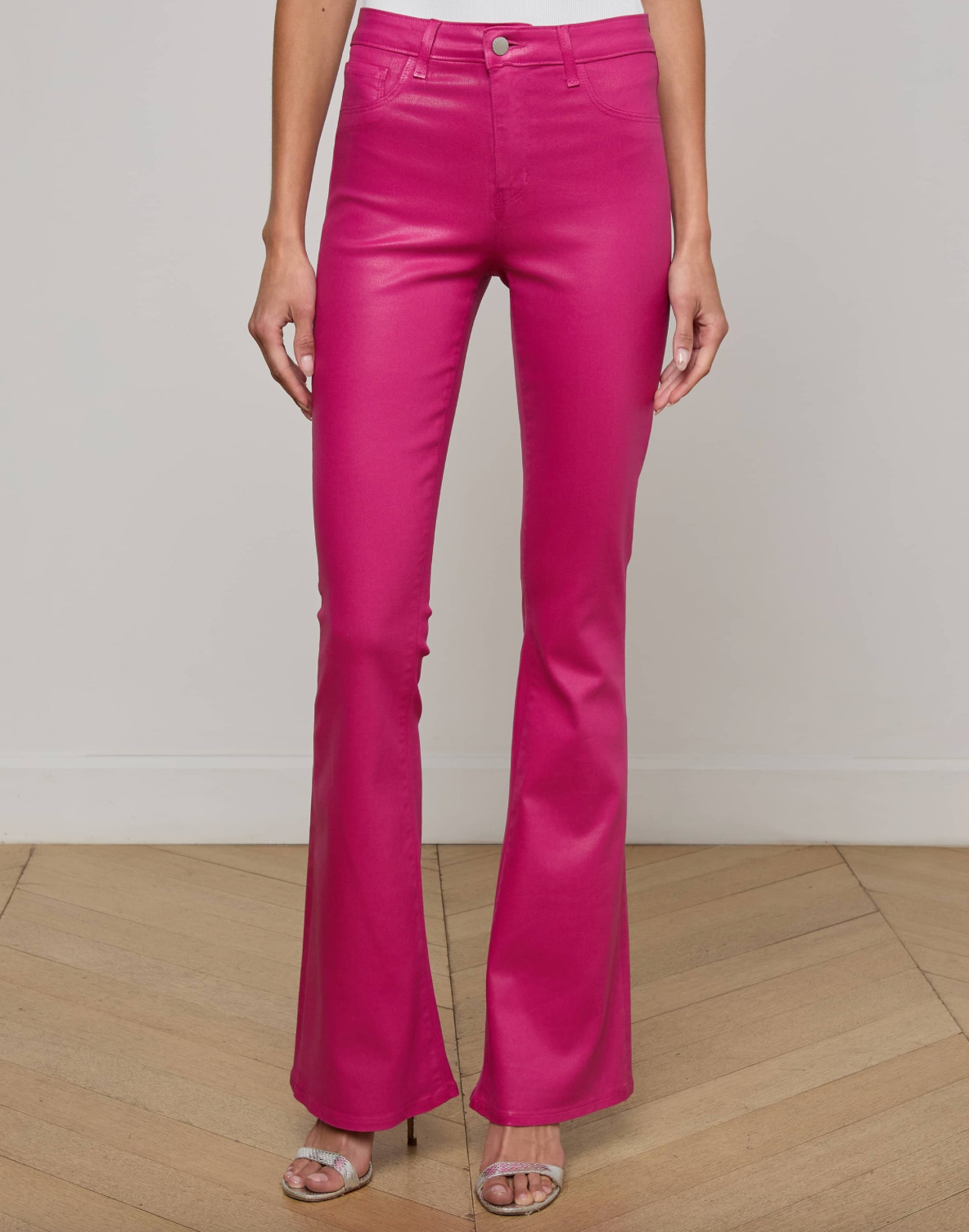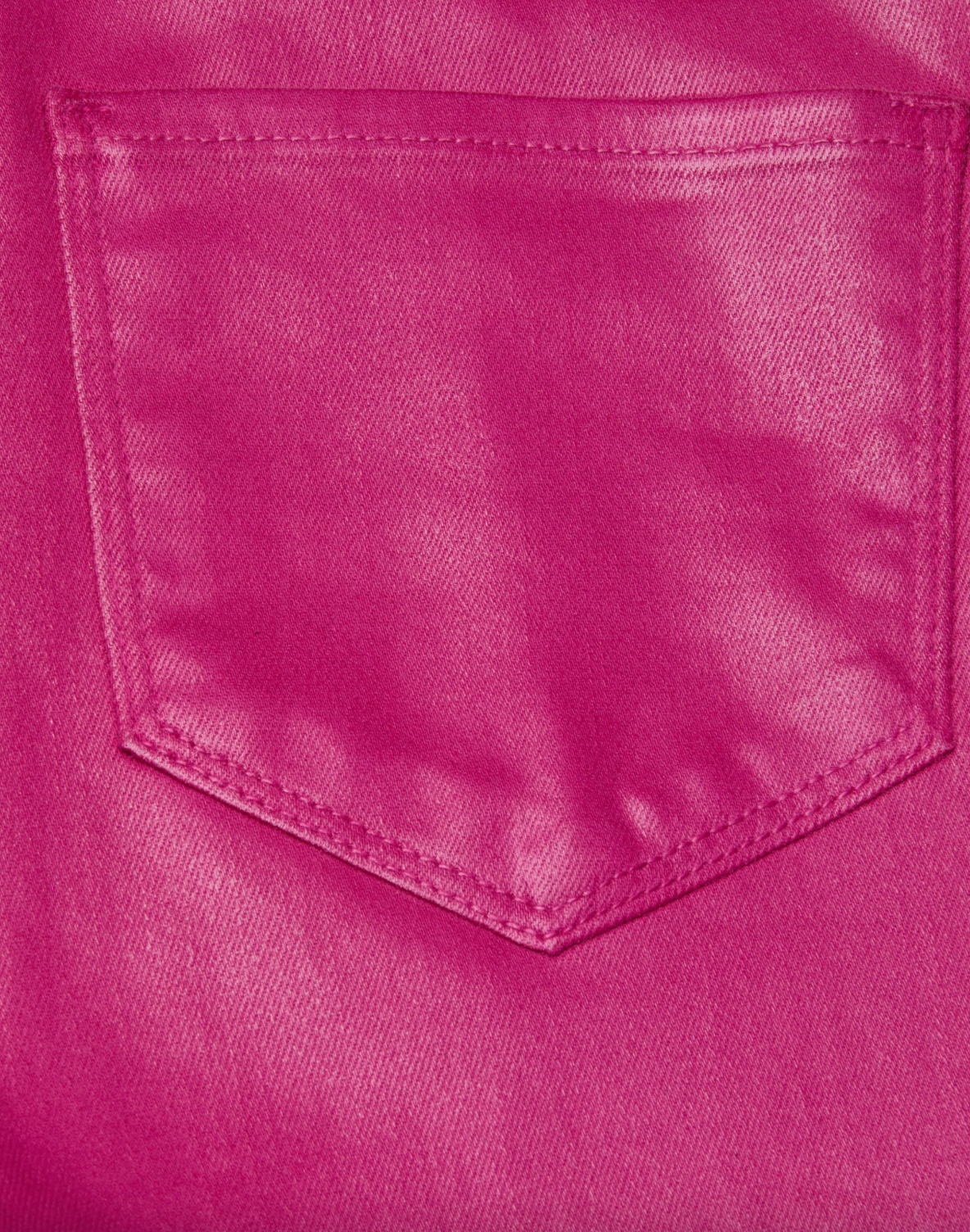 The perfect statement color of bold hot pink- crafted from a modern leather-alternative coated denim. Designed with a perfectly proportioned fit, this statement piece delivers both comfort and impact. The super-stretch fabrication ensures sleek movement, while the flare silhouette adds timeless appeal.