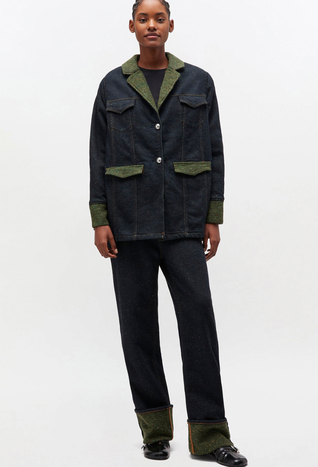 • Heavyweight premium denim blend with wool + silk for elevated texture