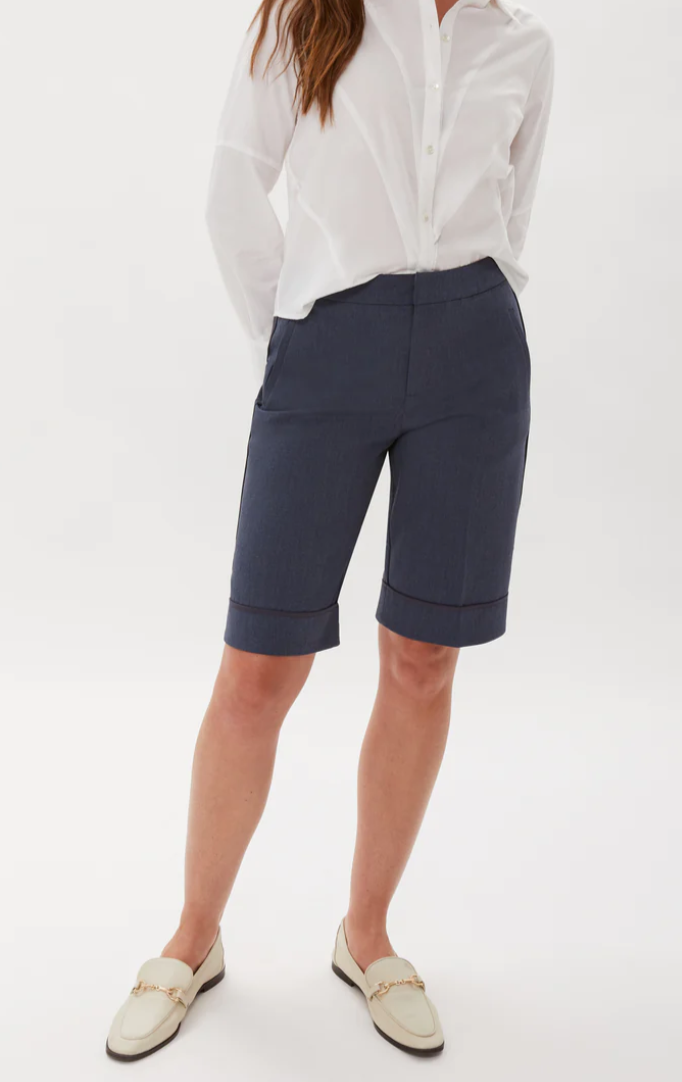 The Metropolitan City Short has the longer length you love and the details you have come to expect from Ecru, including piping along the side seams and a menswear inspired cuff. It's all wrapped up in the perfect heathered Indigo blue shade. Add a white button down and loafers, and you've got a smart city look.