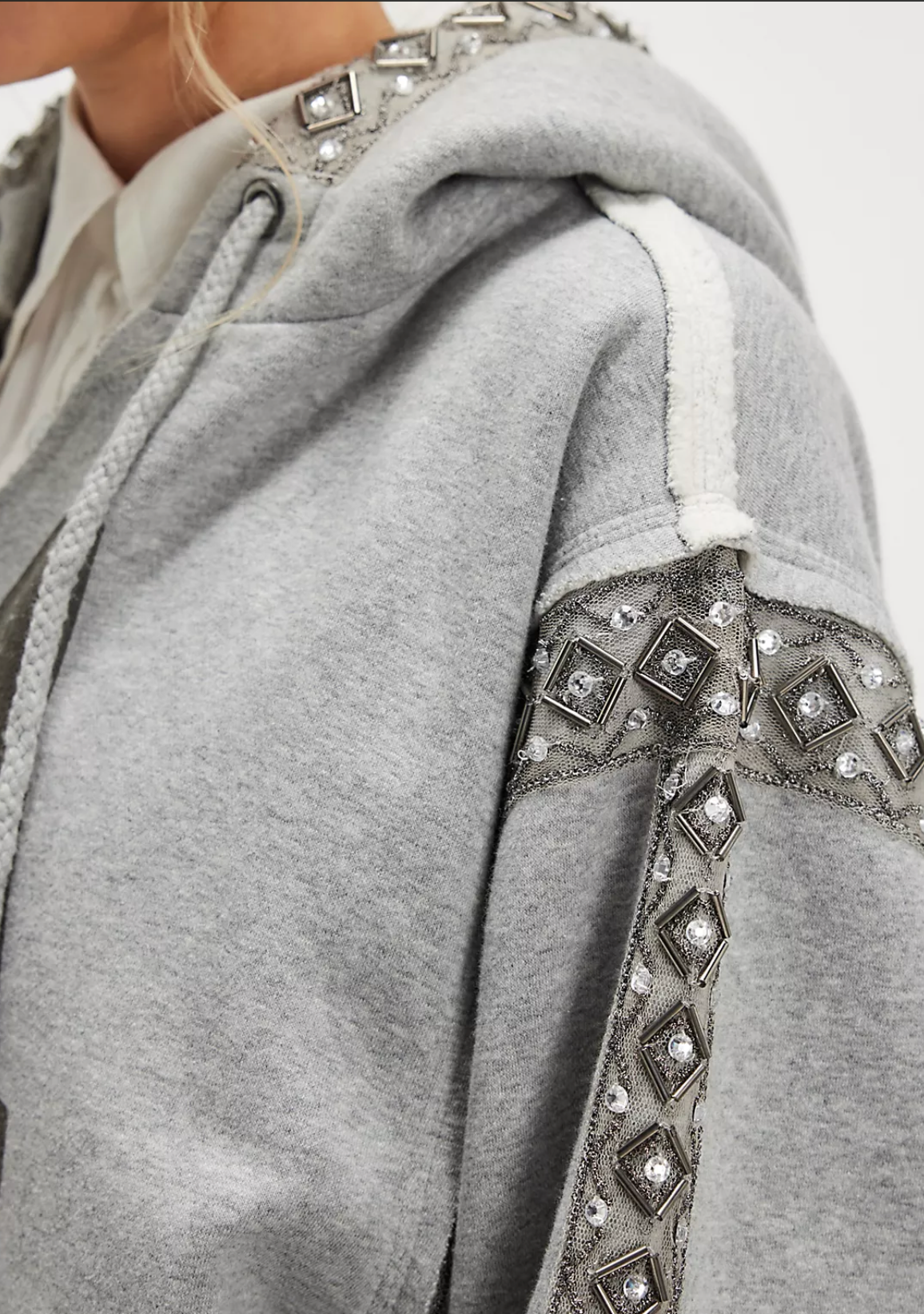 Elevate your casual rotation with this We The Free embellished hoodie—an edgy, standout take on a classic sweatshirt. Designed in a relaxed silhouette, it features a sporty graphic, subtle sparkle accents, and a modern notched V-neckline that adds a fresh twist to everyday loungewear. Crafted from a soft, cotton-blend fabric, it’s the perfect layer for off-duty days, weekend errands, or cozy evenings in. Pair this embellished hoodie with joggers, leggings, or your favorite broken-in denim for an effortless, street-style look.
