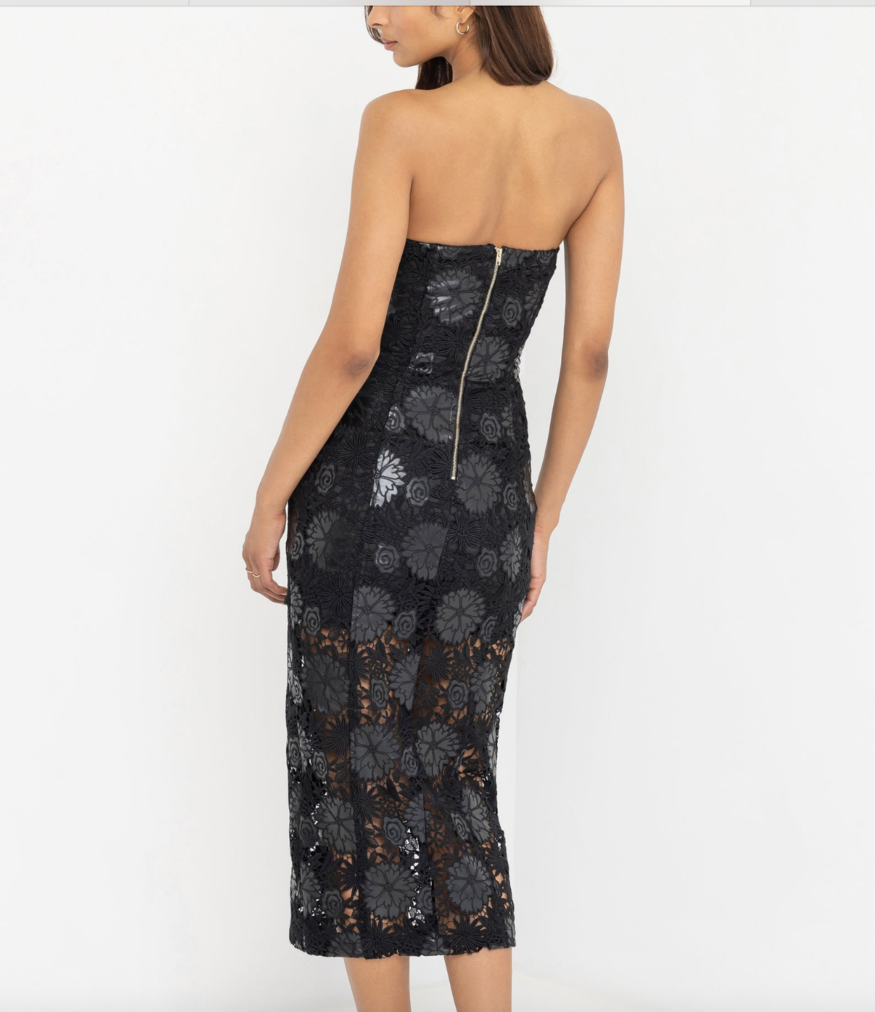 GENERATION LOVEMisha Vegan Leather Guipure Midi Dress