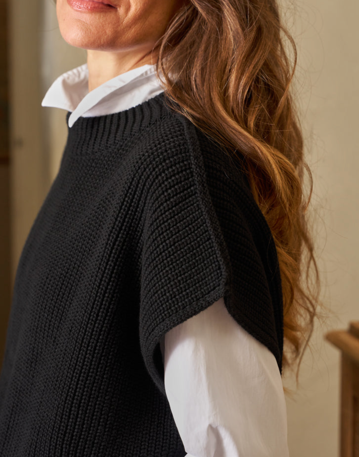 - Iconic pullover vest with exaggerated crew neckline