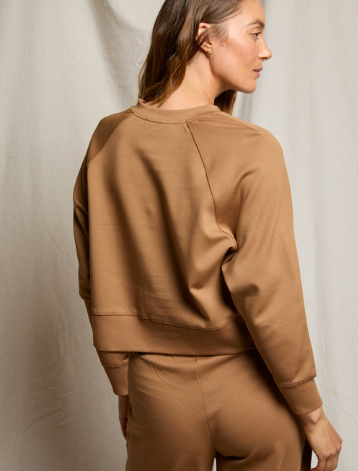 The Nell Sweatshirt is your go-to throw-on-and-go layer, blending laid-back comfort with a polished, modern silhouette. Crafted from a soft, structured travel fabric, this women’s crewneck sweatshirt features a slightly cropped length and contemporary raglan sleeves, making it perfect for everything from long-haul flights to everyday errands.