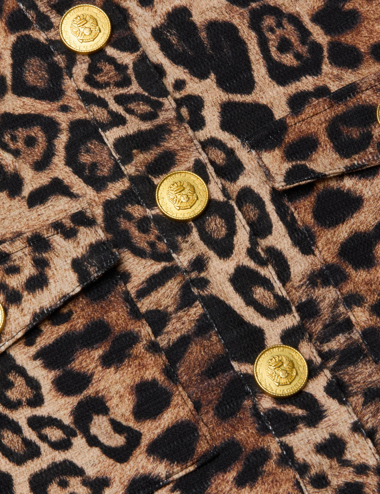 An essential layer with standout edge, the Nyx Jacket brings personality to everyday dressing. Crafted from printed tweed in a bold leopard motif, this relaxed-fit jacket balances structure and ease with shoulder pads for shape and a fully lined interior for comfort. Snap buttons and patch pockets add utility, while the versatile silhouette makes styling effortless. Throw it on over jeans and a tee for off-duty cool, or pair it with the matching leopard mini skirt for a head-turning, coordinated look.