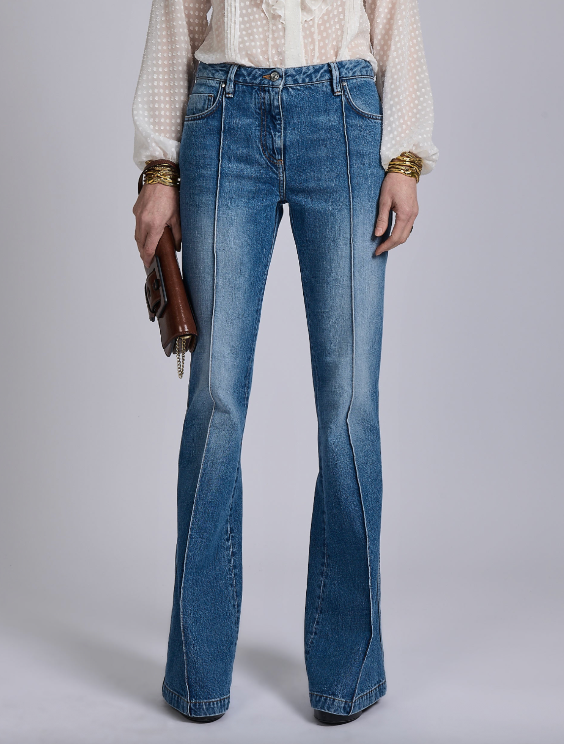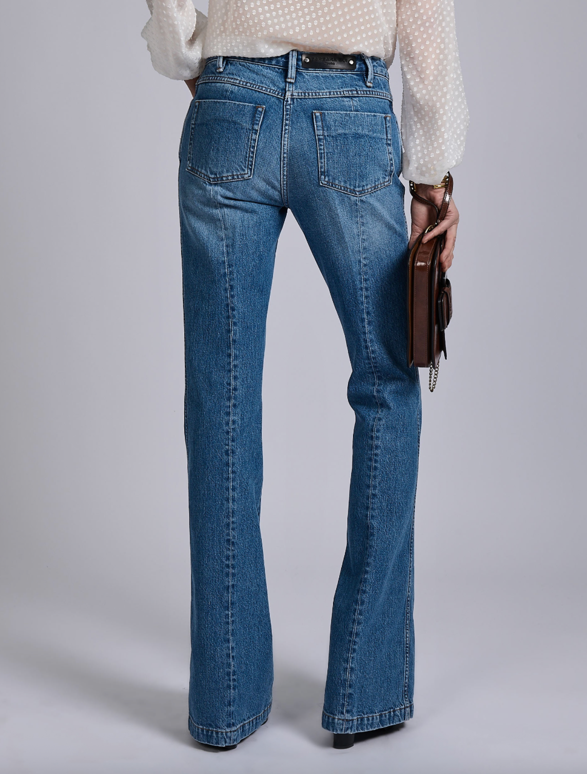 An essential elevated: this bootcut jean redefines everyday denim with a polished edge. Crafted in 100% cotton and finished in a subtly faded blue wash, it elongates the leg through a tailored sewn pleat while flattering seams refine the silhouette. Versatile enough for day-to-night styling, it embodies the effortless chic of Barbara Bui—pair it with matching denim for a modern jumpsuit effect or with a blazer for a sharp yet relaxed look.