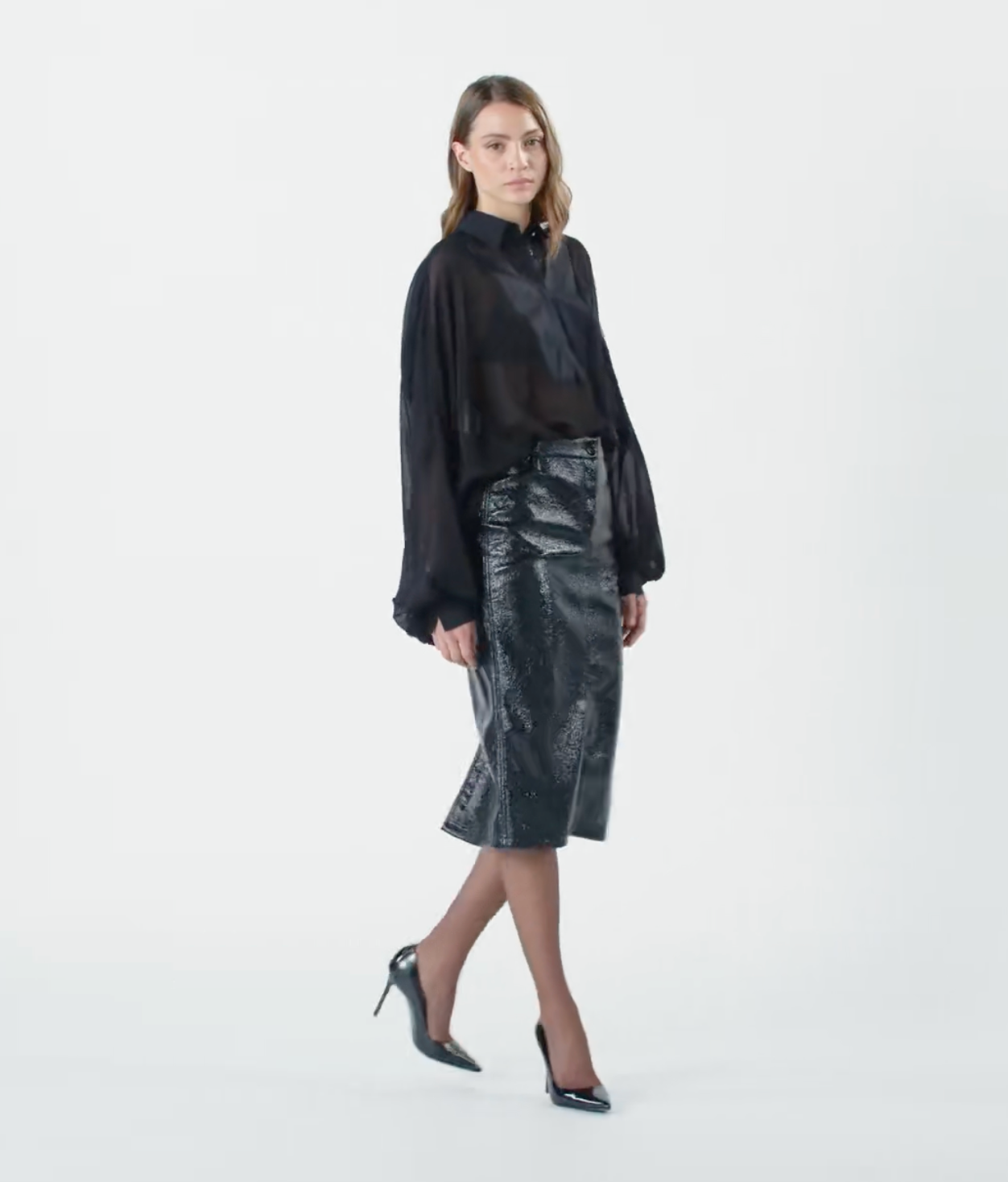 - Patent leather–effect coating for bold shine and edge