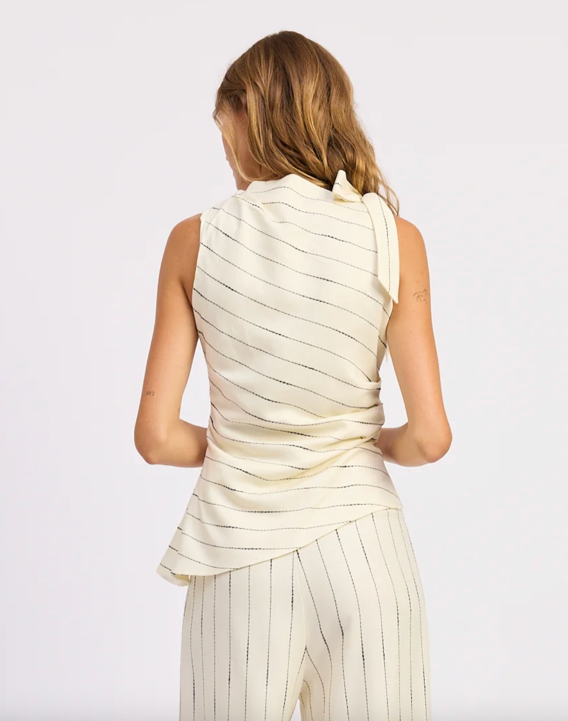 Effortlessly refined with a modern twist, this bias-cut tunic top features an asymmetric ruched side tie that softly contours the body. Crafted from a breathable linen–viscose blend and fully lined in cotton, it drapes beautifully for a relaxed yet intentional silhouette.
