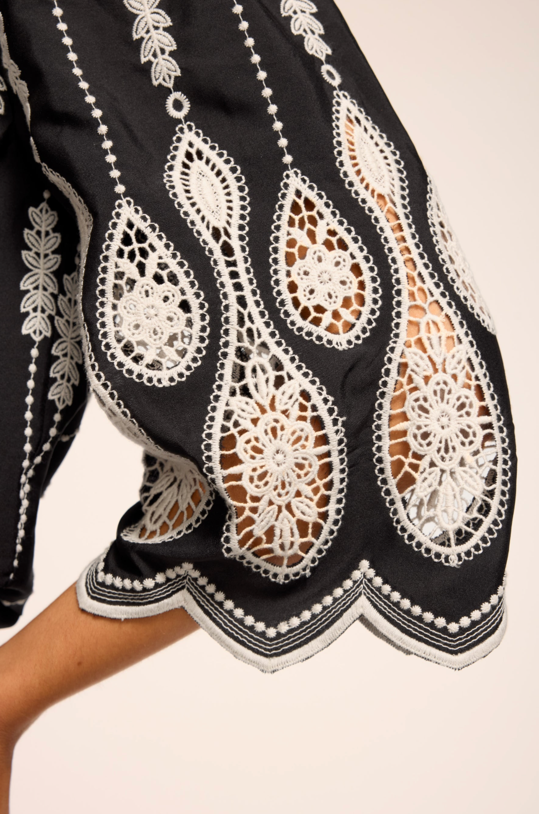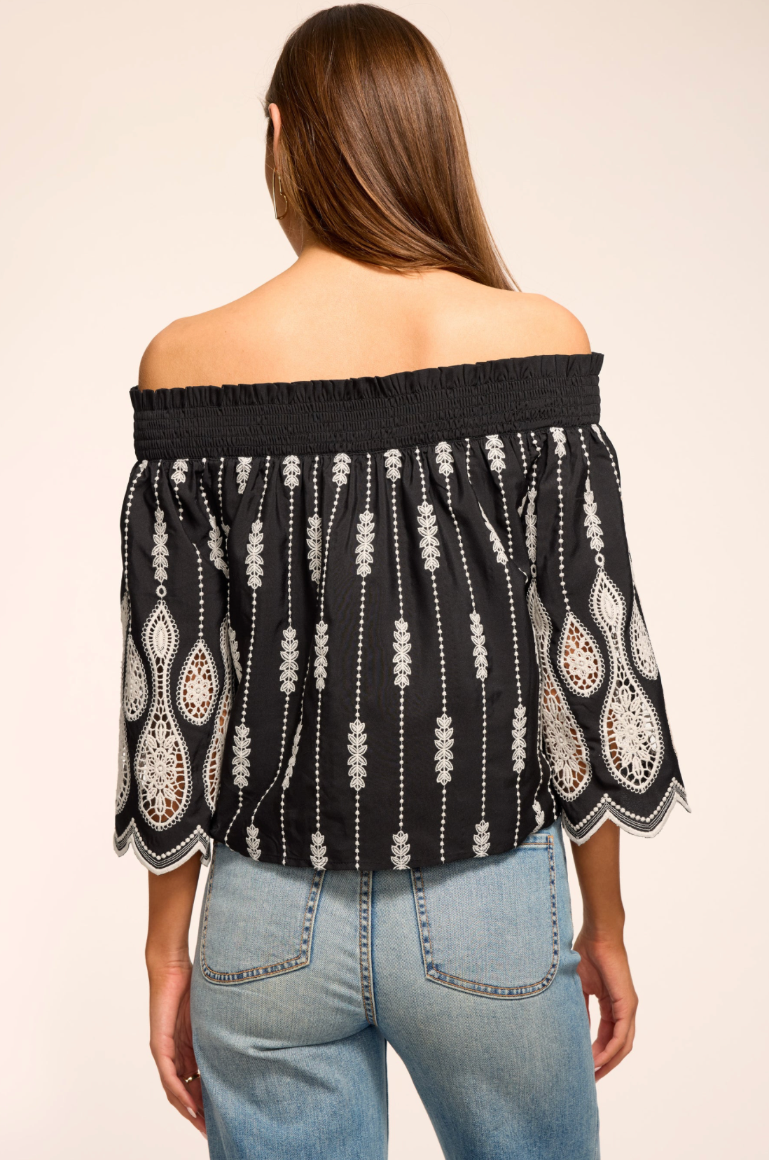 The Rubie is equal parts romantic and refined, crafted in embroidered lace with an off-the-shoulder silhouette that feels effortlessly alluring. Designed with a softly draped elastic neckline and elegant 3/4 sleeves, it’s the perfect choice for cocktail hours, evening events, and nights out.