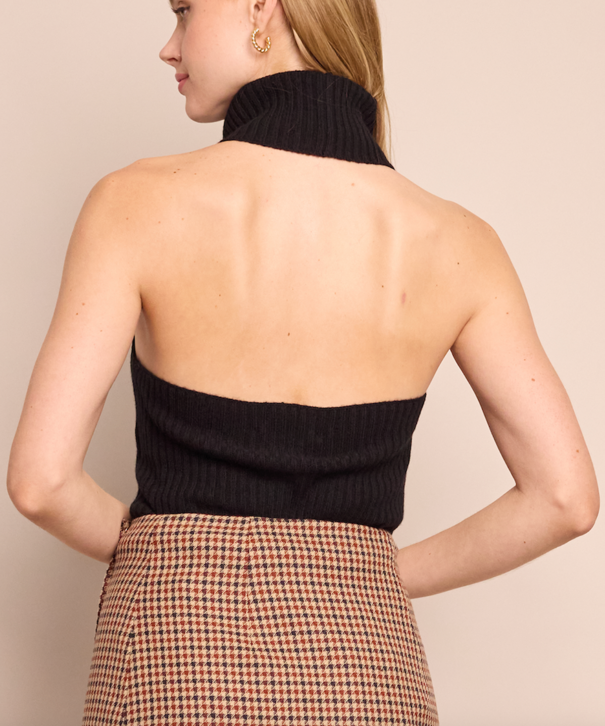 The Samson Top is a statement in softness and structure. Crafted in a fine ribbed knit of wool and cashmere, this open-back halter top features an exaggerated turtleneck and vertical ribbing that naturally enhances the figure. Its body-con fit offers both comfort and elegance, making it ideal for layering or wearing on its own for a bold, minimal look.