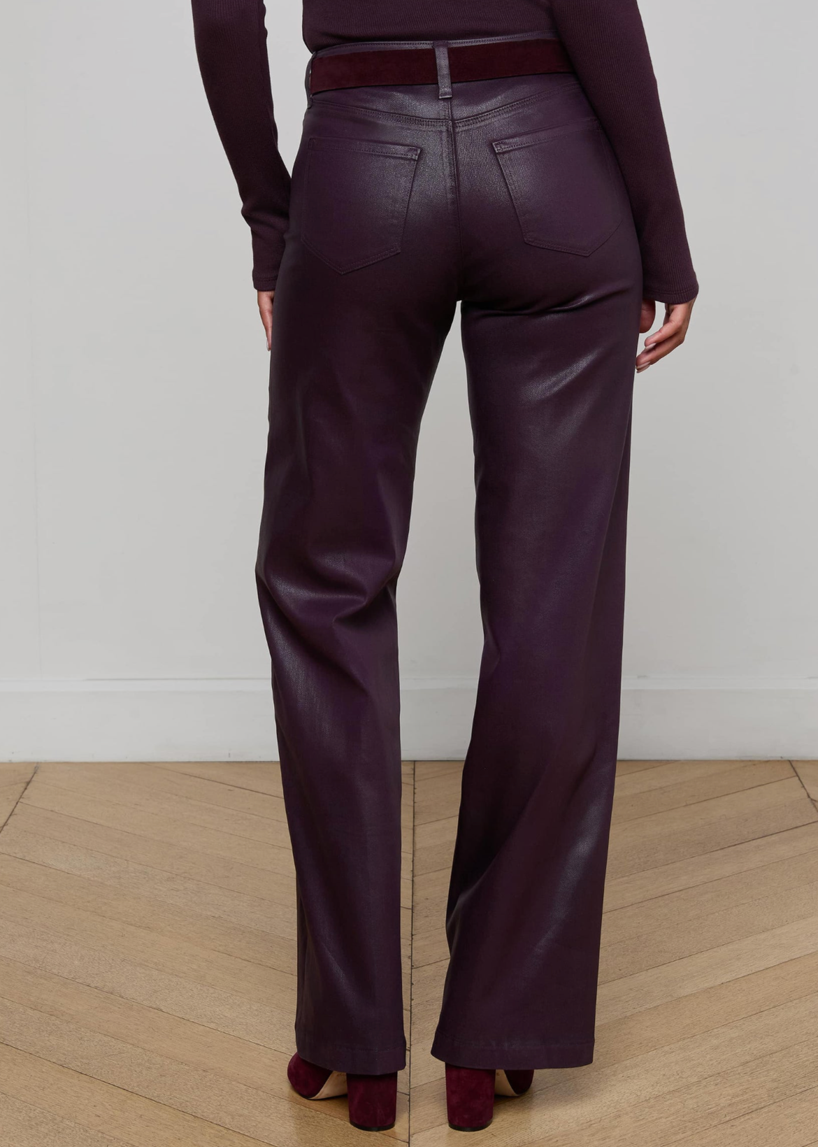 The Scottie is our classic wide-leg jean, designed to enhance and elongate. This best-selling silhouette skims the hips before releasing into a relaxed, full-length leg for striking proportions. Crafted in Dark Malbec coated denim, it delivers a polished, leather-inspired look with the comfort of super stretch — the perfect statement style for day or night.