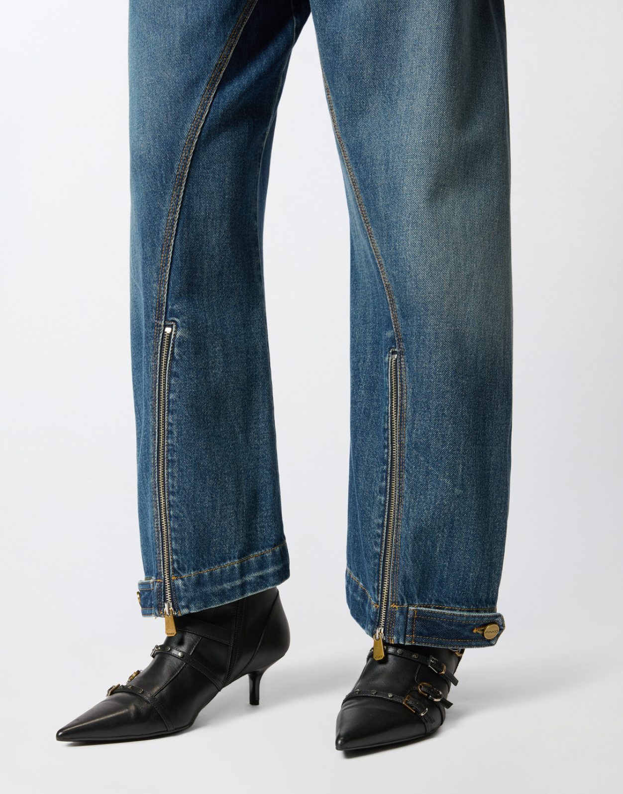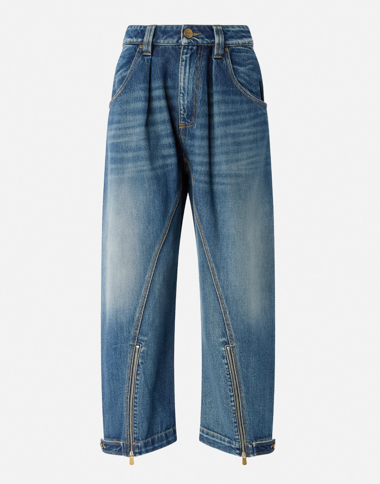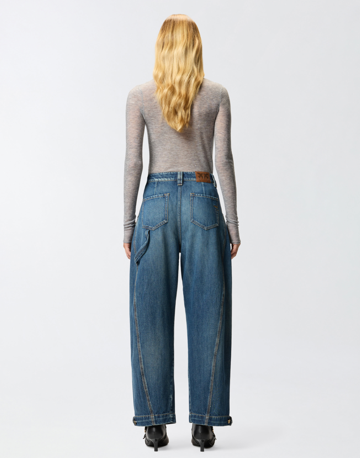 A standout silhouette for denim lovers, these balloon-fit jeans deliver sculptural shape with effortless attitude. The softly rounded leg narrows toward the hem, where adjustable hardware lets you cinch or relax the profile. Crafted from float-woven cotton denim, they drape with softness while showcasing distinctive hand-finished treatments—stonewashing, sanding, and localized spray effects—for authentic character. Finished with signature PINKO branding and workwear-inspired elements, they’re the ultimate piece to elevate everyday outfitting with cool, contemporary edge.
