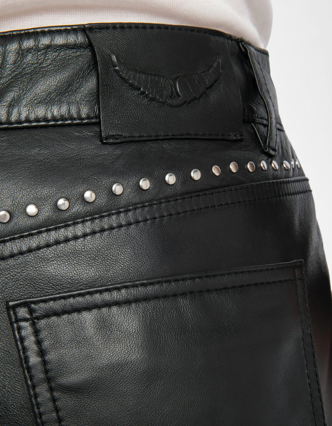 Crafted from 100% lambskin, these smooth leather shorts bring a modern edge to a timeless silhouette. Designed with a lace-up front closure and functional front and interior pockets, they balance structure with soft, supple texture. A versatile piece that transitions effortlessly from day to night.