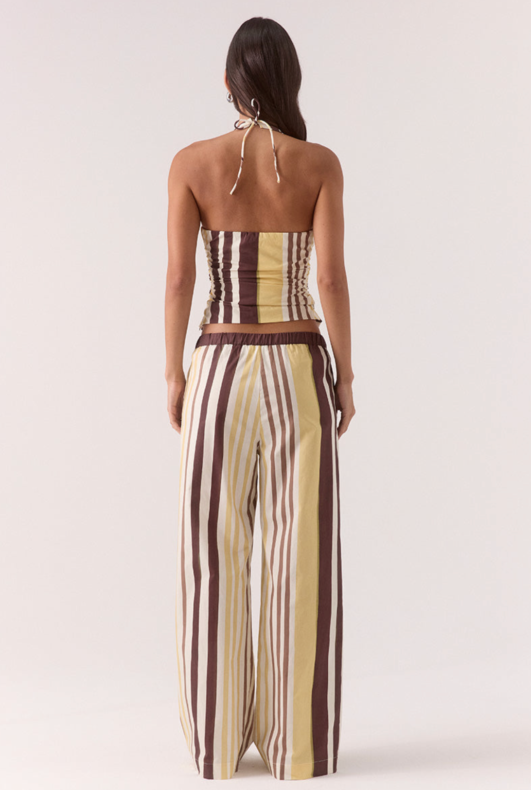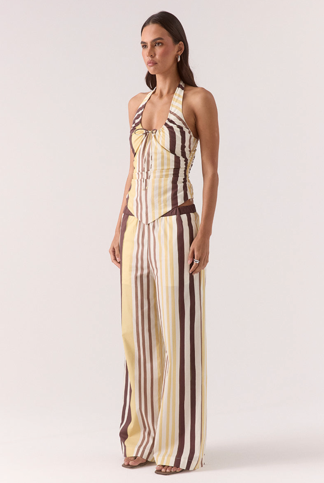 This halter neck top brings a fresh, feminine feel with its exclusive in-house print and softly sculpted shape. Crafted from comfortable cotton stretch, it features adjustable ties and side gathering that flatter the body while allowing for a customizable fit. The V-shaped hem adds a modern edge, making it easy to style with tailored trousers, denim, or a sleek skirt for day-to-night versatility.