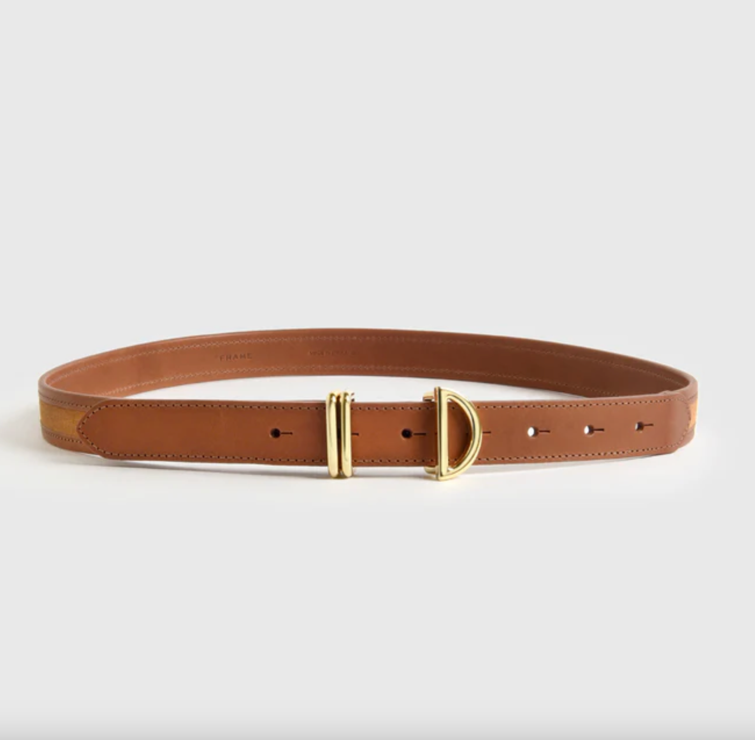 This two-tone suede and smooth leather belt is a chic and versatile addition to your wardrobe. The high-shine gold-tone hardware adds a polished finish, while the combination of soft suede and smooth leather gives it a sophisticated, yet modern look. With a width of 1.25 inches, it’s the ideal size to cinch in your waist on dresses, pants, or outerwear for an effortlessly stylish finish.