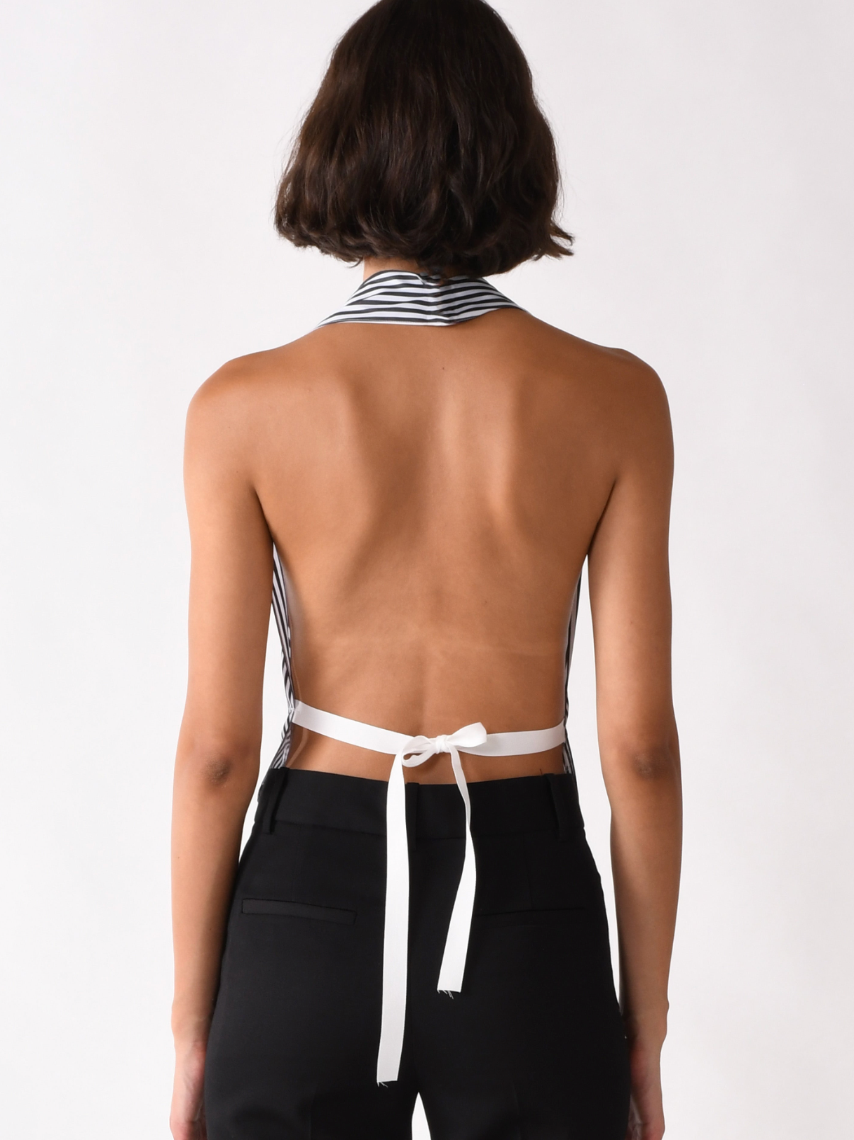 Effortlessly elegant with a modern twist, The Halter Top features an open back and ties with a luxurious 100% grosgrain ribbon for a feminine, adjustable fit. Crafted in Los Angeles from BIOFUSION® organic cotton, this piece combines refined design with sustainable innovation. Wear it solo for a chic minimalist look or layer it as a decorative underpinning beneath blazers, knits, or sheer tops.