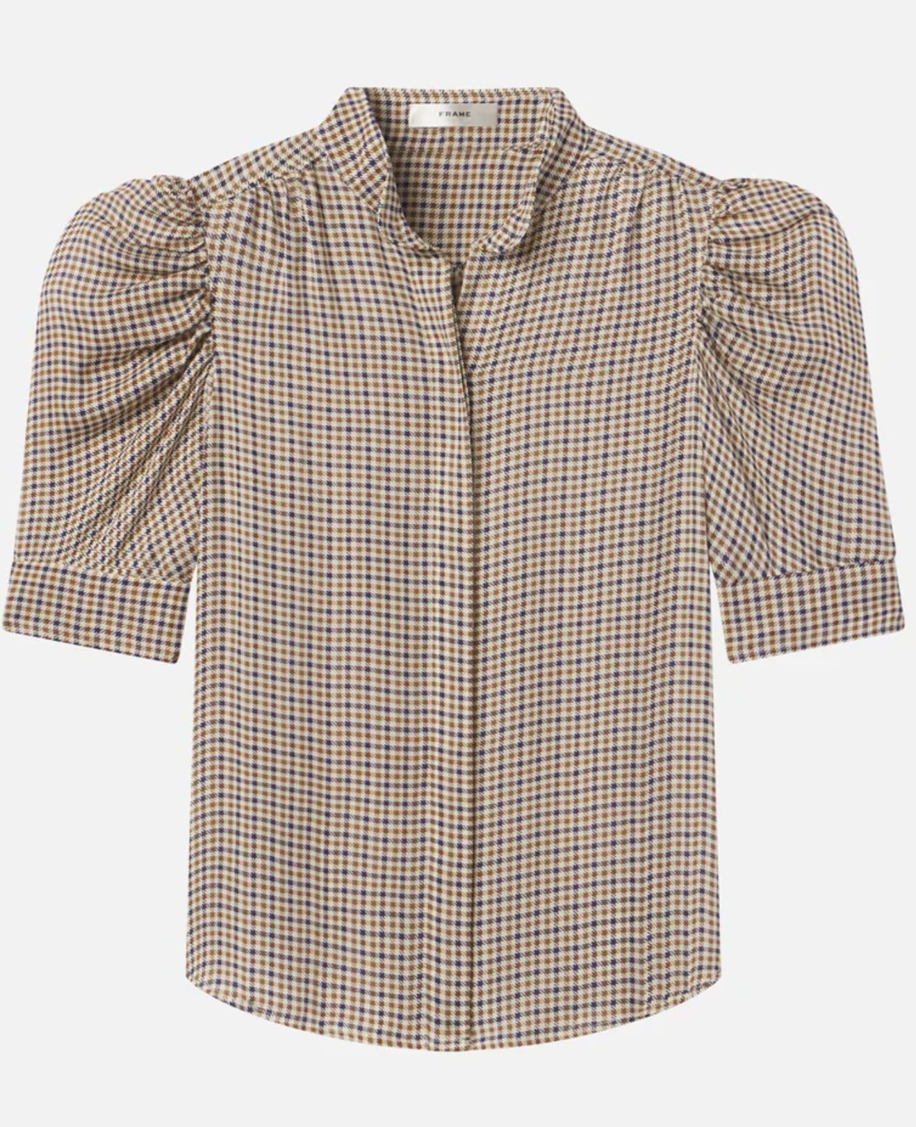At once modern and feminine, this silk blouse is a FRAME favorite for effortless polish. The high neckline and softly puffed, ruched sleeves strike the perfect balance between refined and romantic, making it an easy pairing with everything from classic denim to tailored trousers. A timeless wardrobe staple designed to elevate everyday dressing.