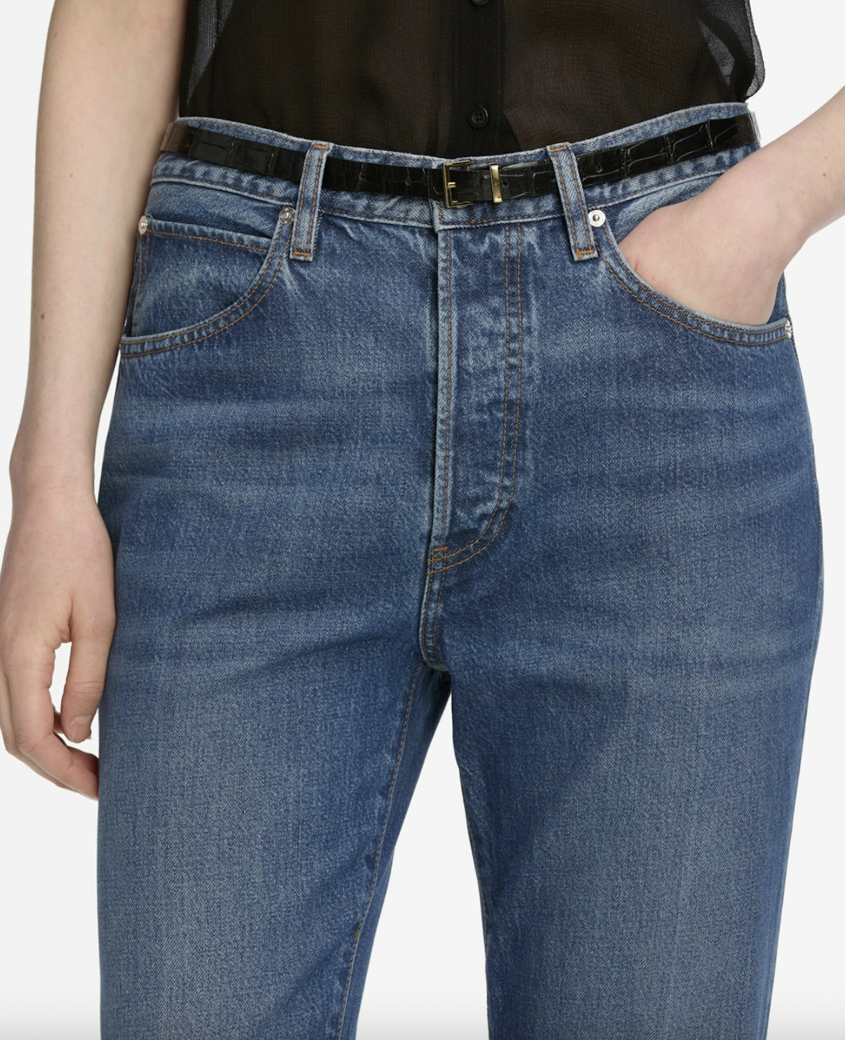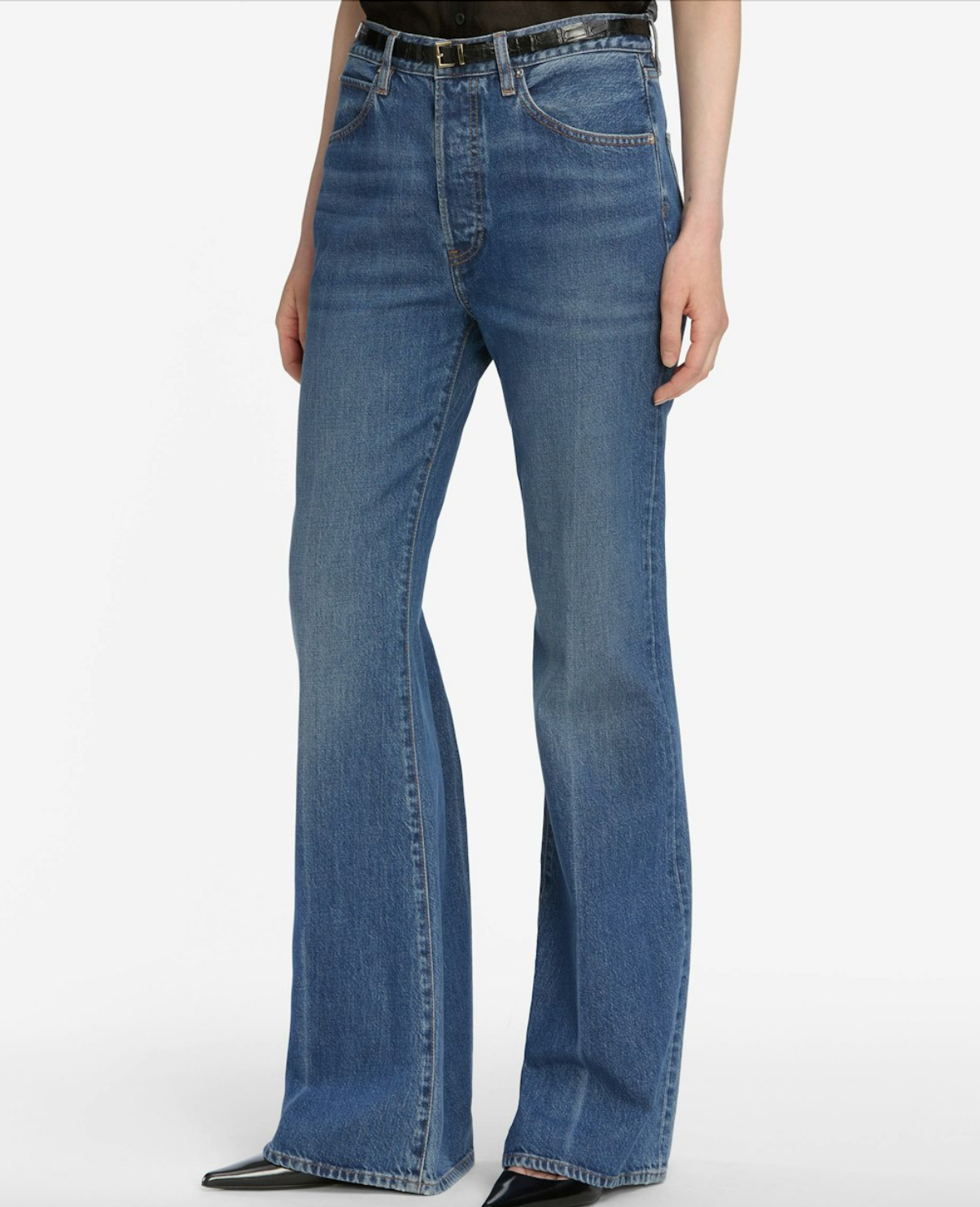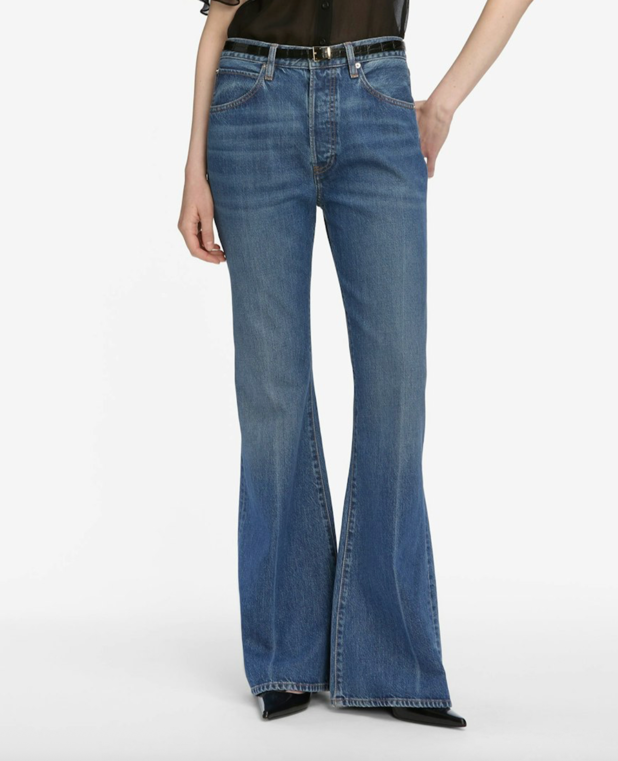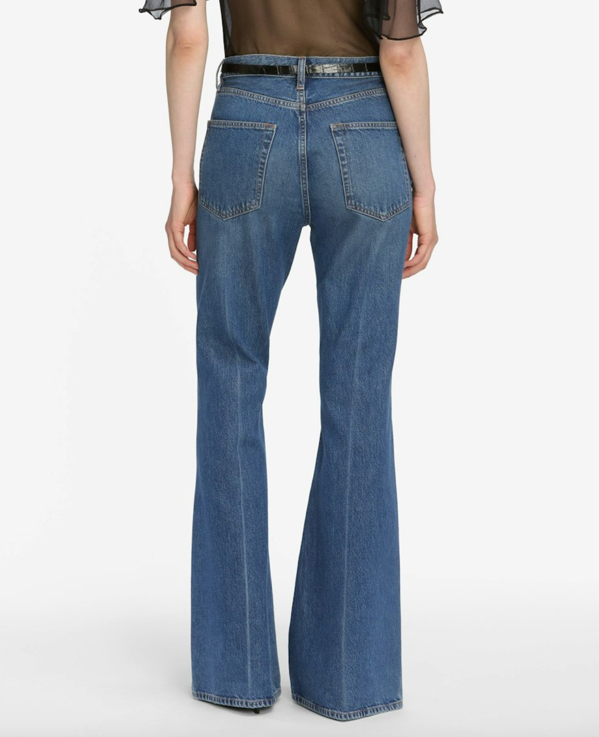 A bold return to classic denim, this full-length flare jean is crafted from 100% rigid cotton for a vintage-inspired look and feel. Featuring a flattering high-rise fit and dramatic leg opening, it's the perfect statement pair to elevate your everyday denim rotation.